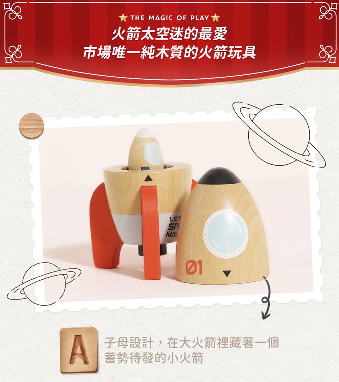 。火箭太空迷的最愛! 市場唯一純木質的火箭玩具