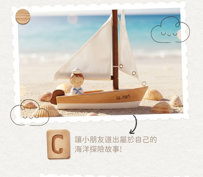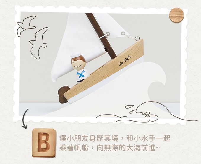 。讓小朋友身歷其境,和小水手一起乘著帆船,向無際的大海前進