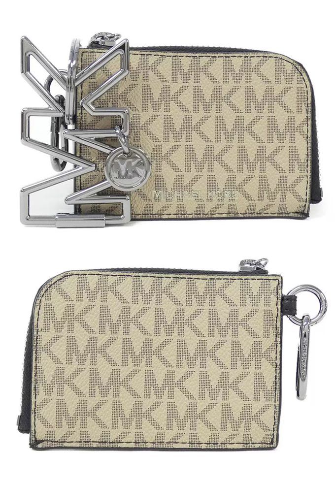 滿版LOGO帆布拉鍊卡夾零錢包 (亞麻)