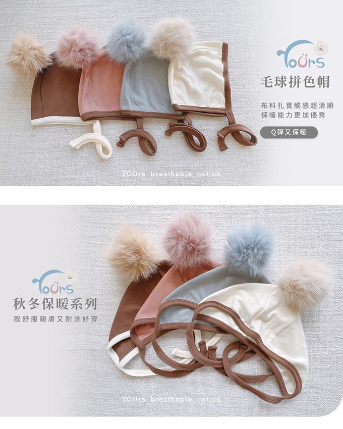 毛球拼色帽