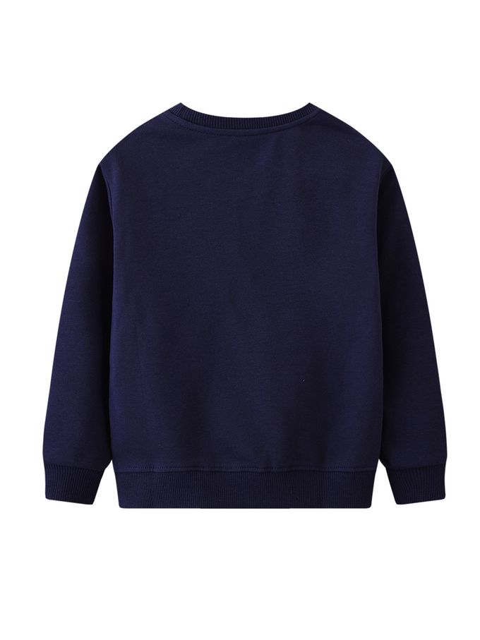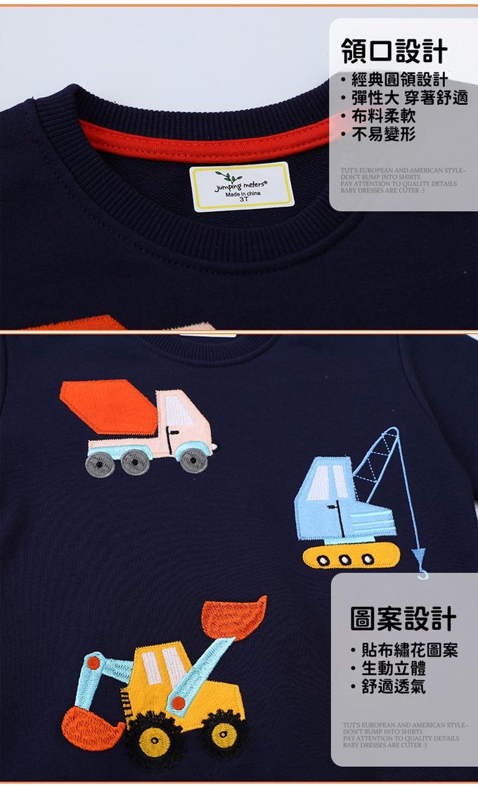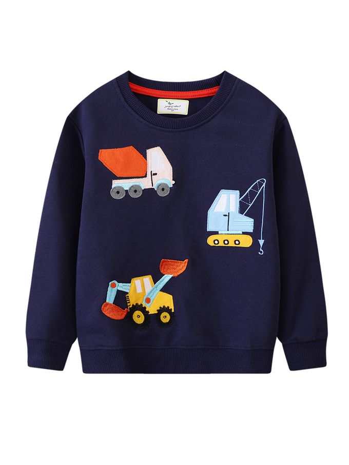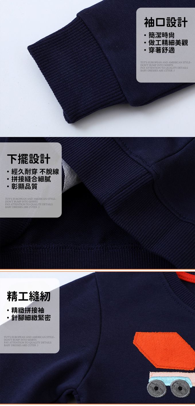 圓領棉質長袖上衣/大學T-三台工程車-藏青