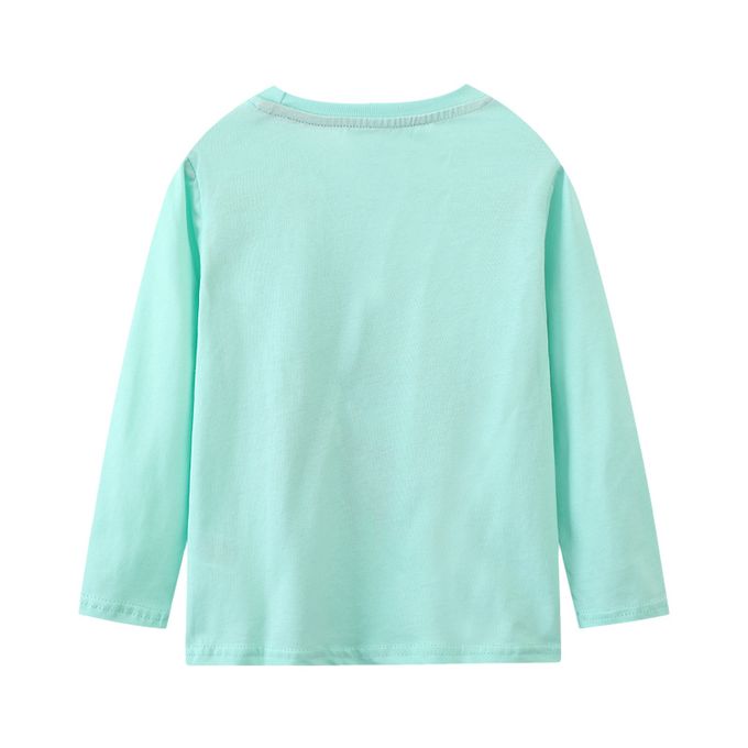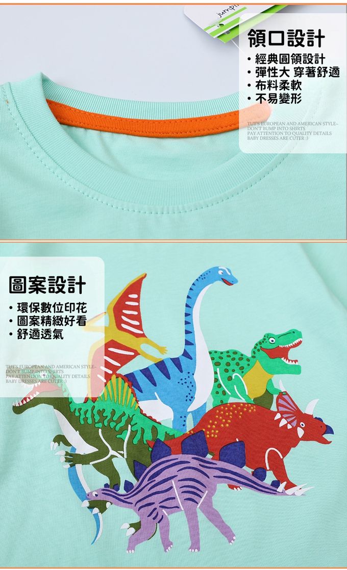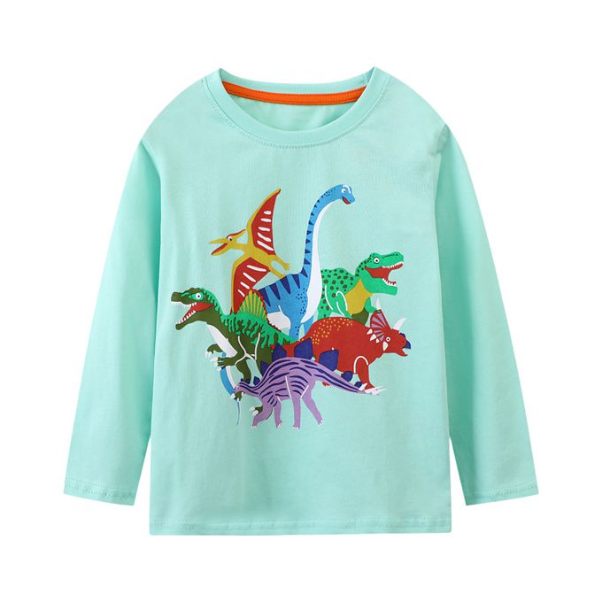 圓領棉質長袖上衣-恐龍大集合-藍綠色