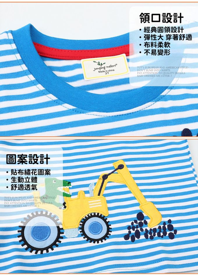 Jumping meters - 圓領棉質長袖上衣-紅黃綠工程車-黑白條紋