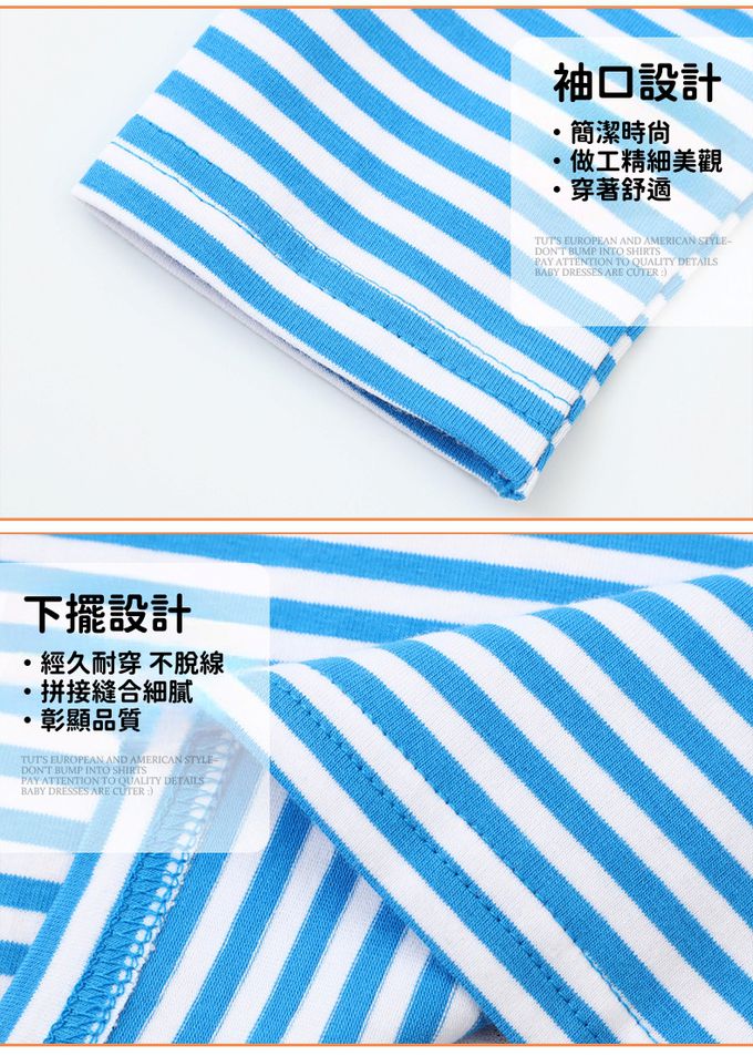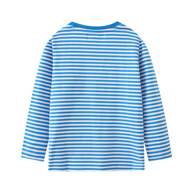 圓領棉質長袖上衣-恐龍挖土中-藍白條紋