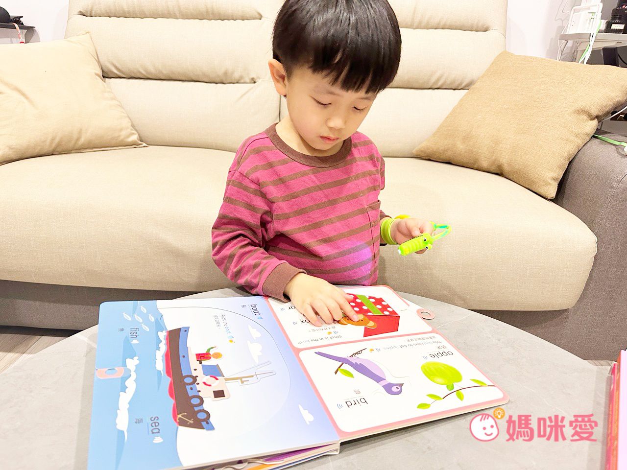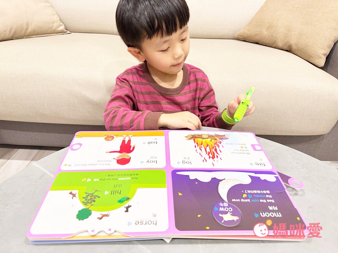 現在我唸故事書的時間也減少了,因為孩子都會主動去戴上點讀筆聽英文、聽音樂~真的是自主學習哦!