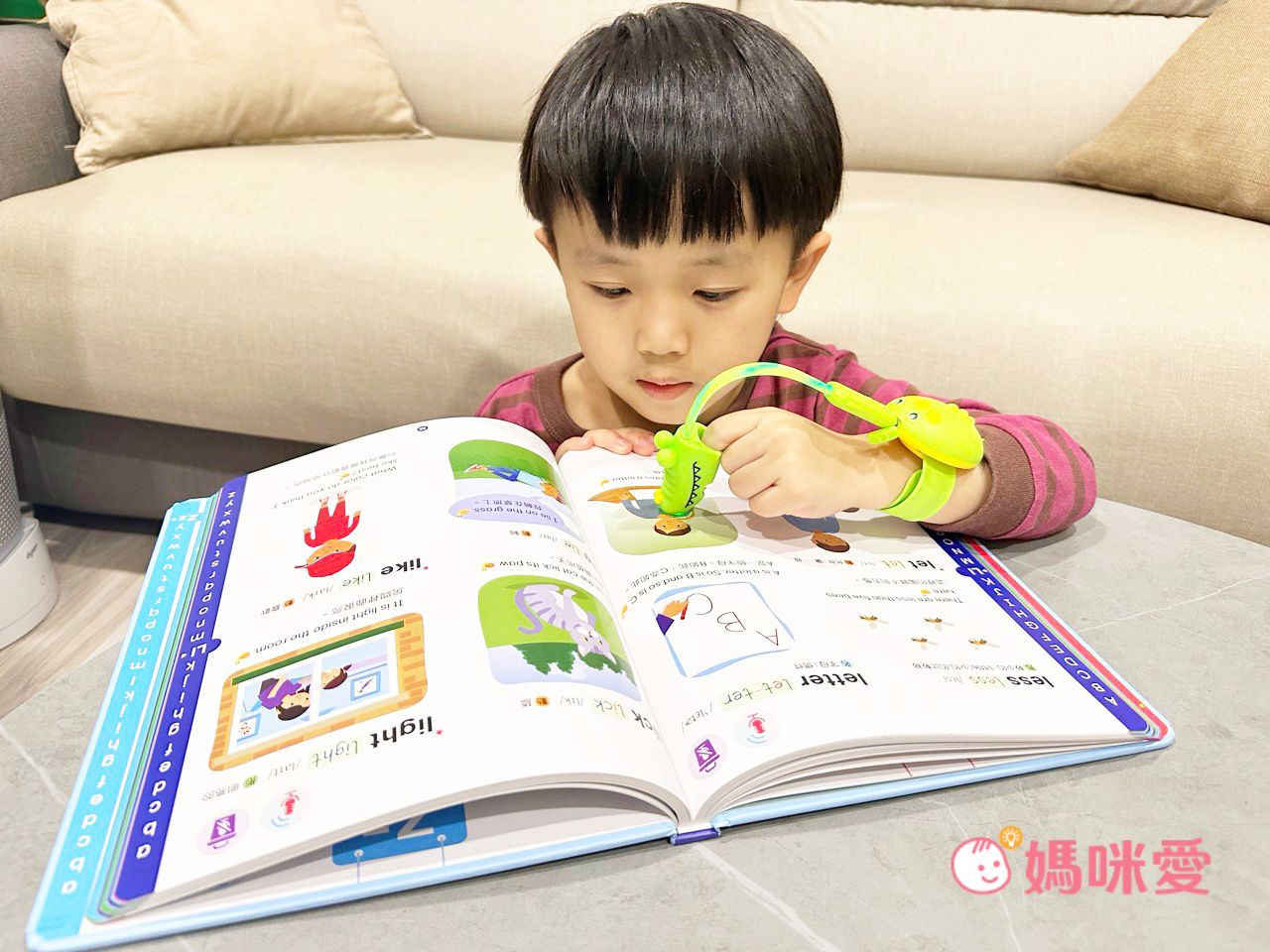 不得不說我家六歲的小孩看到這本書就馬上開始「研究」。他覺得很有趣也很新奇!學習過程中,也開始嘗試模仿發音,效果比單純讀故事書好很多。