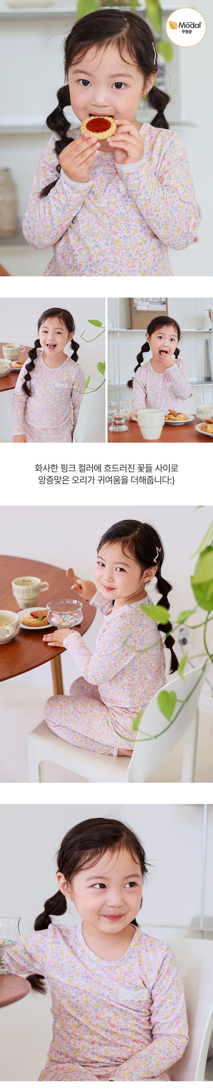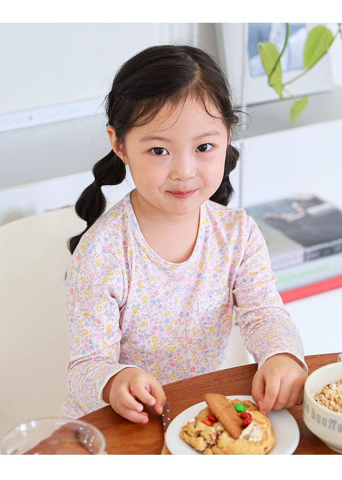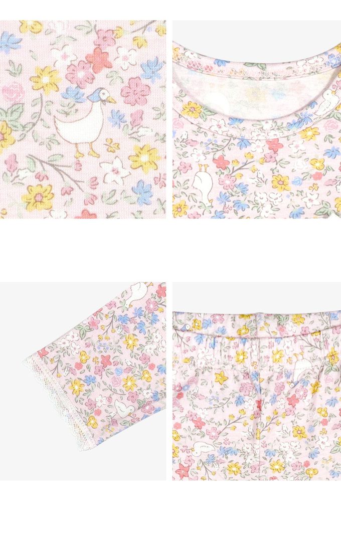 韓國 Ppippilong - 莫代爾親膚絲滑長袖家居服-花團錦簇-淡粉
