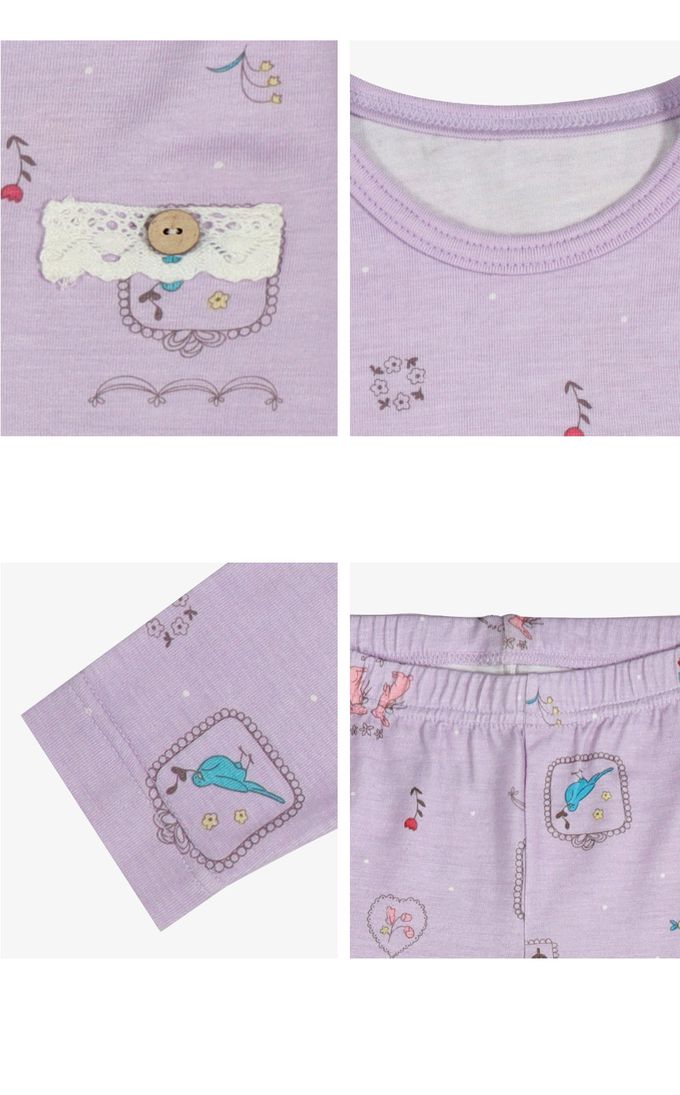 韓國 Ppippilong - 莫代爾親膚絲滑長袖家居服-動物畫框-紫