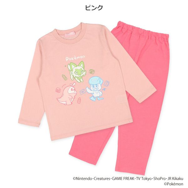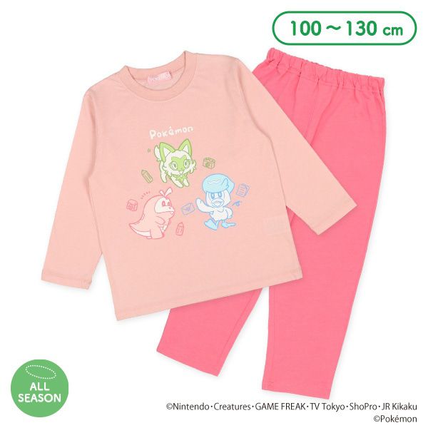 日本西松屋 - 印花長袖家居服/睡衣-卡通人物寶可夢-桃粉