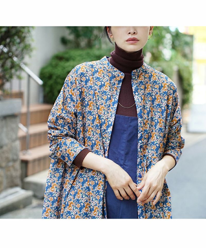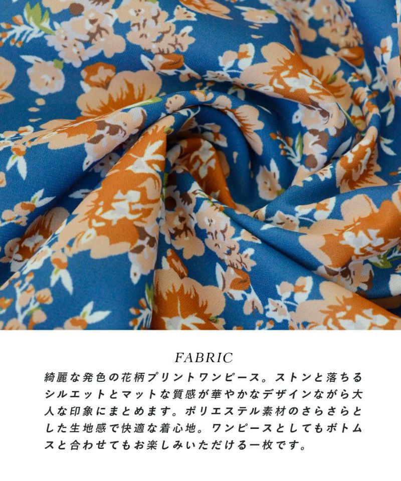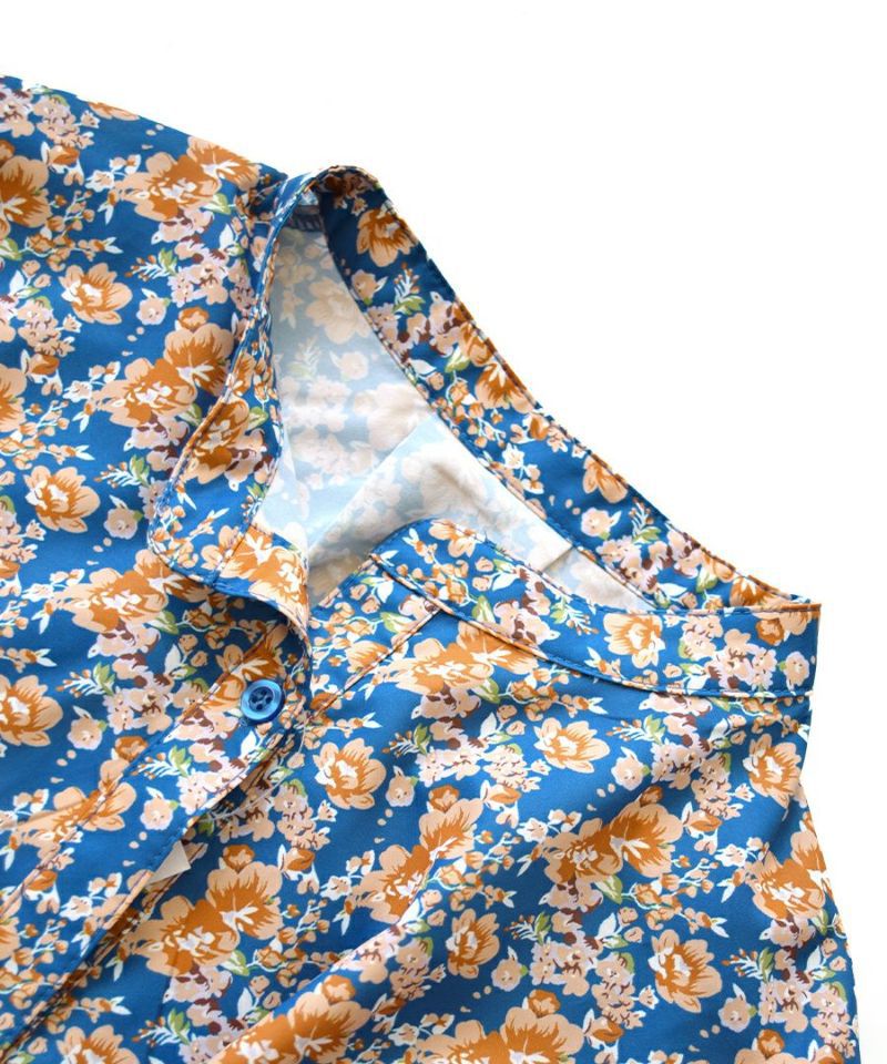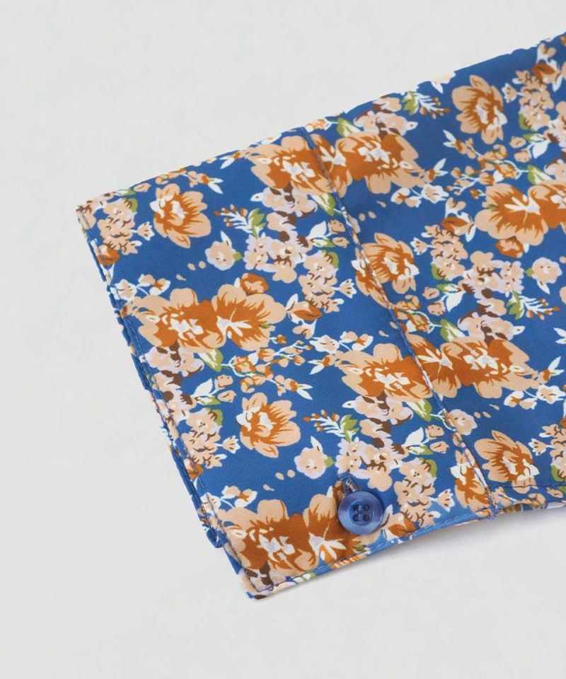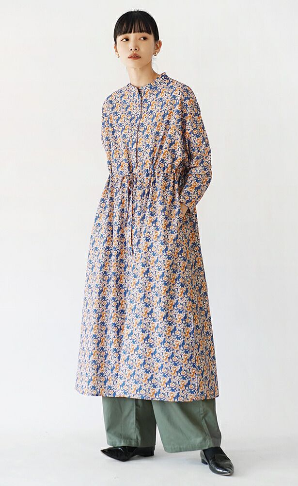 搶眼滿版花腰抽繩長袖襯衫式洋裝