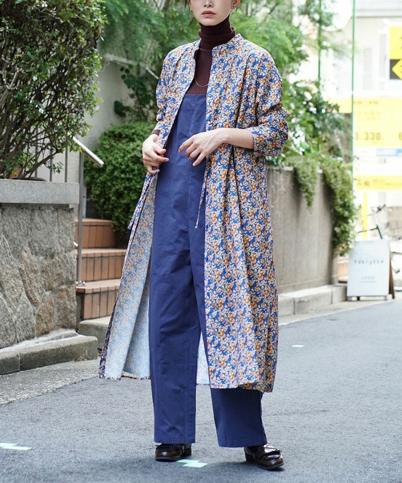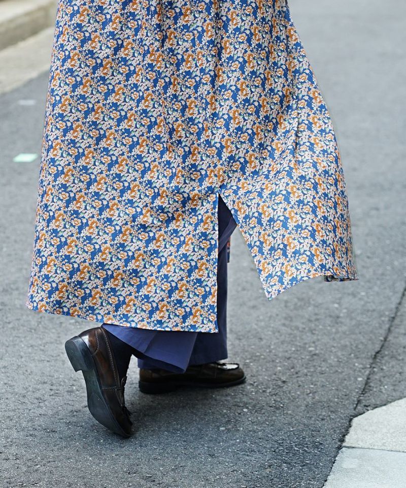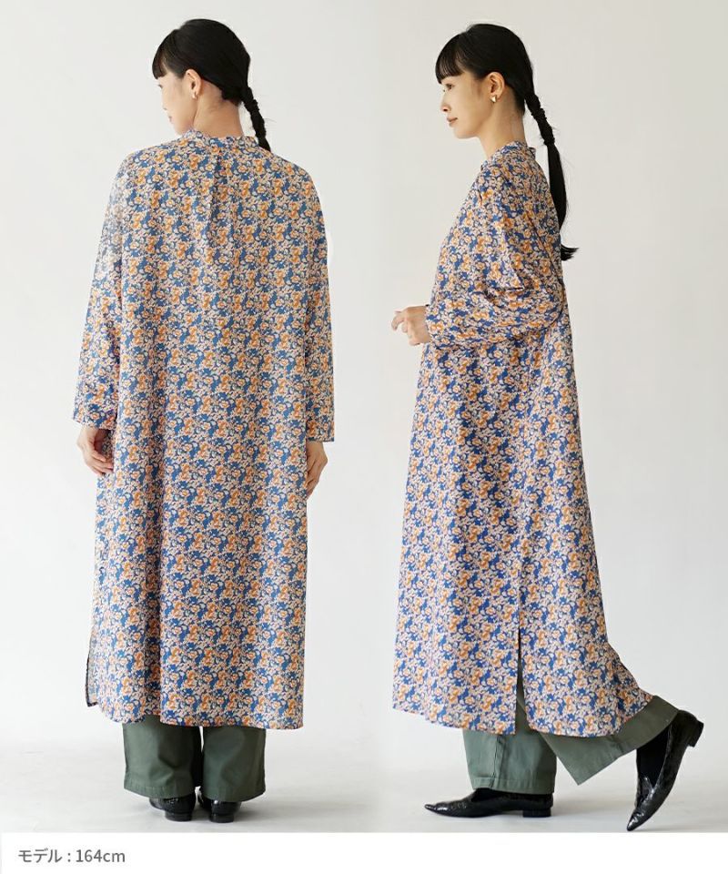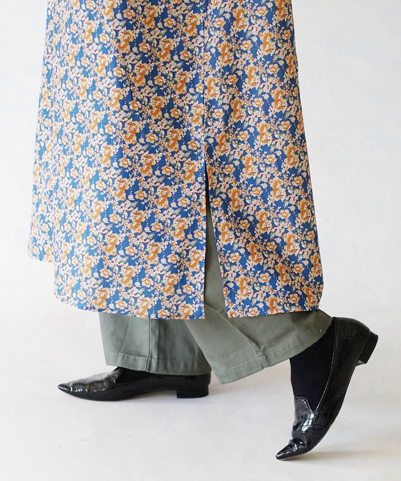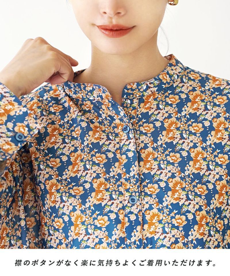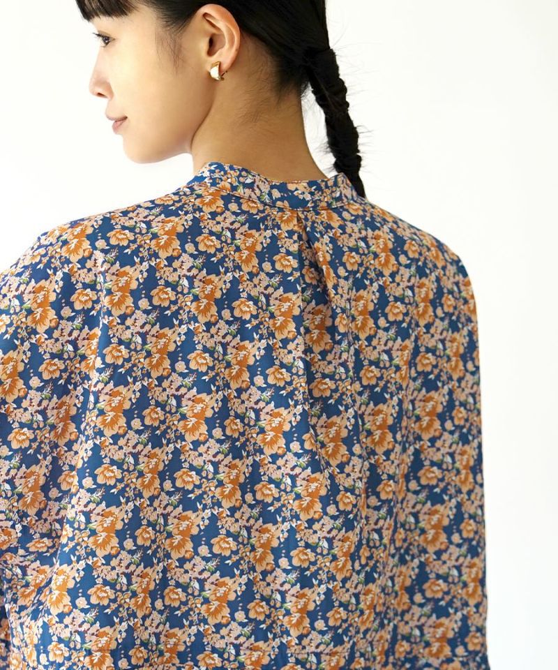 搶眼滿版花腰抽繩長袖襯衫式洋裝