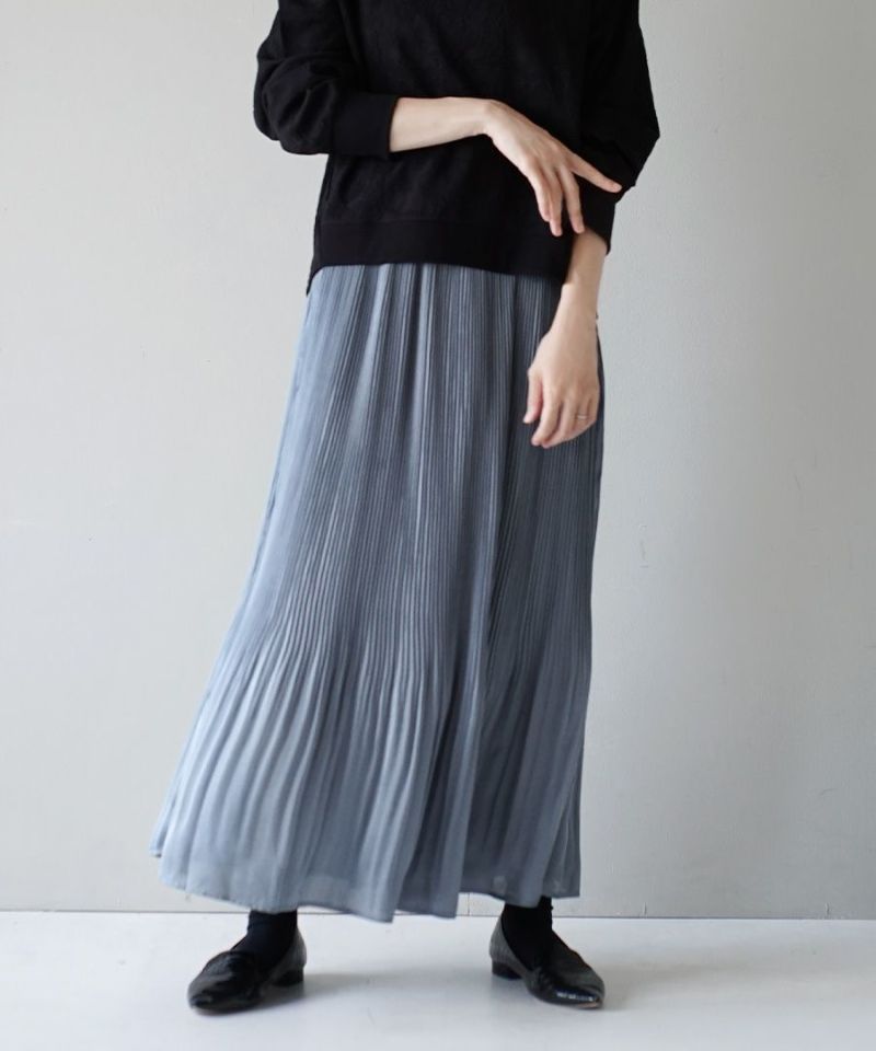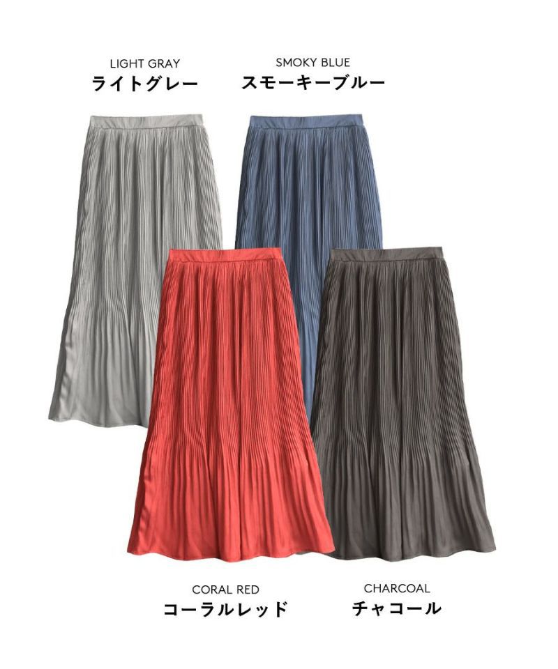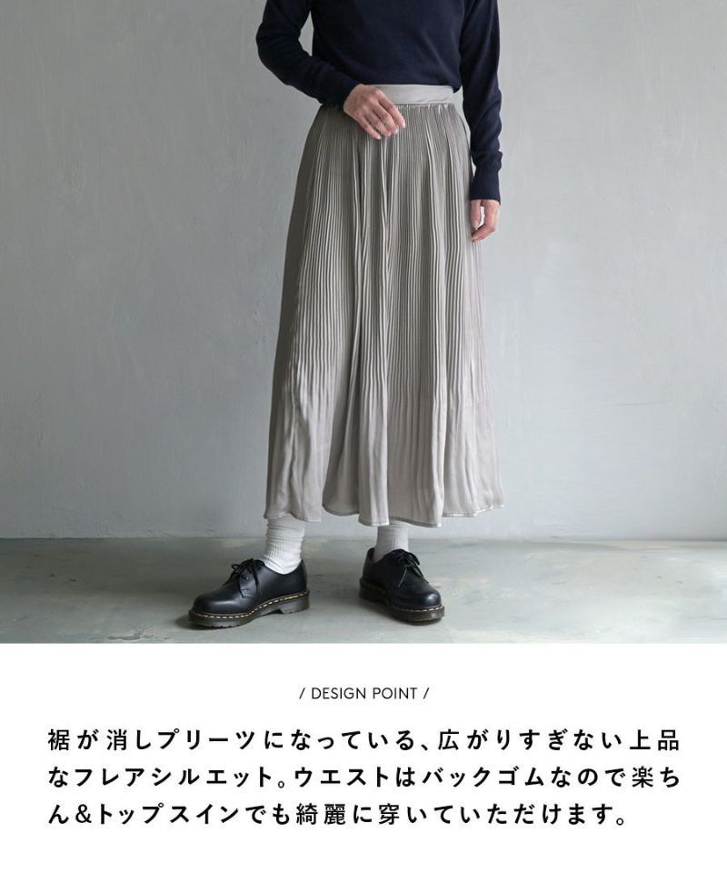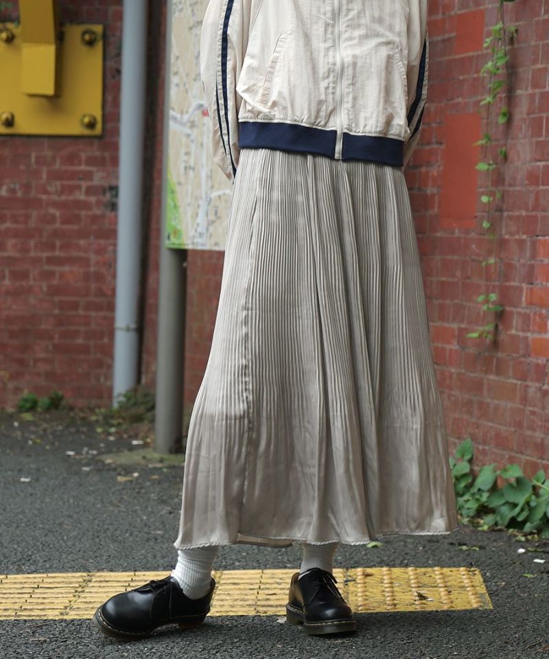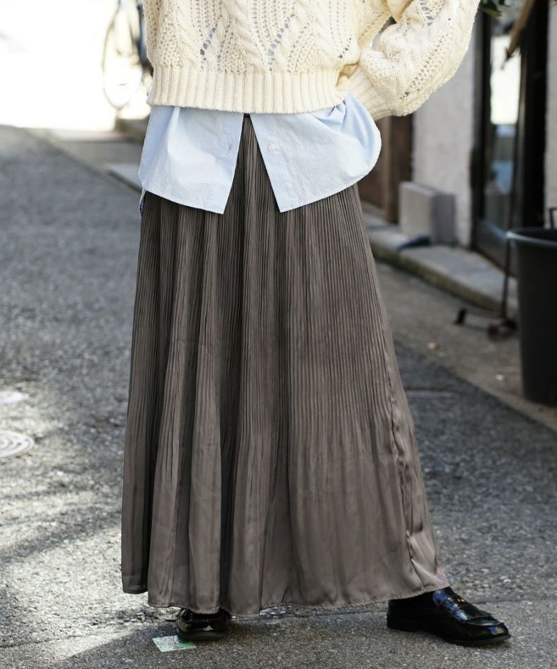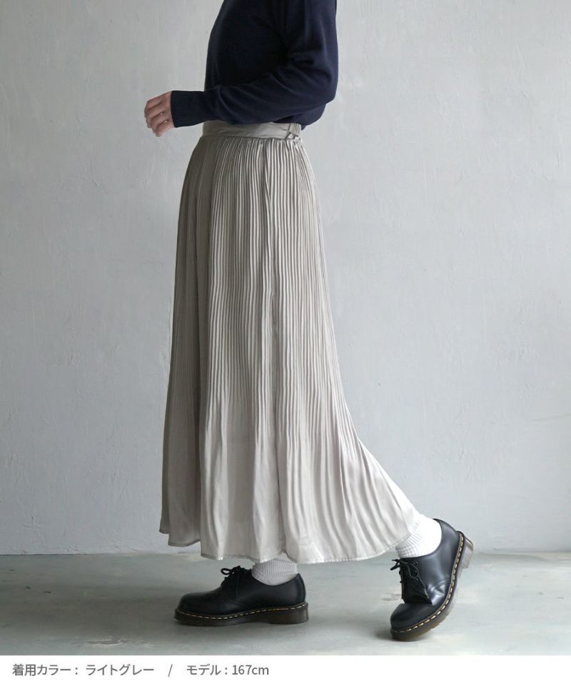日本 zootie - 輕盈保暖百褶緞面長裙-淺灰