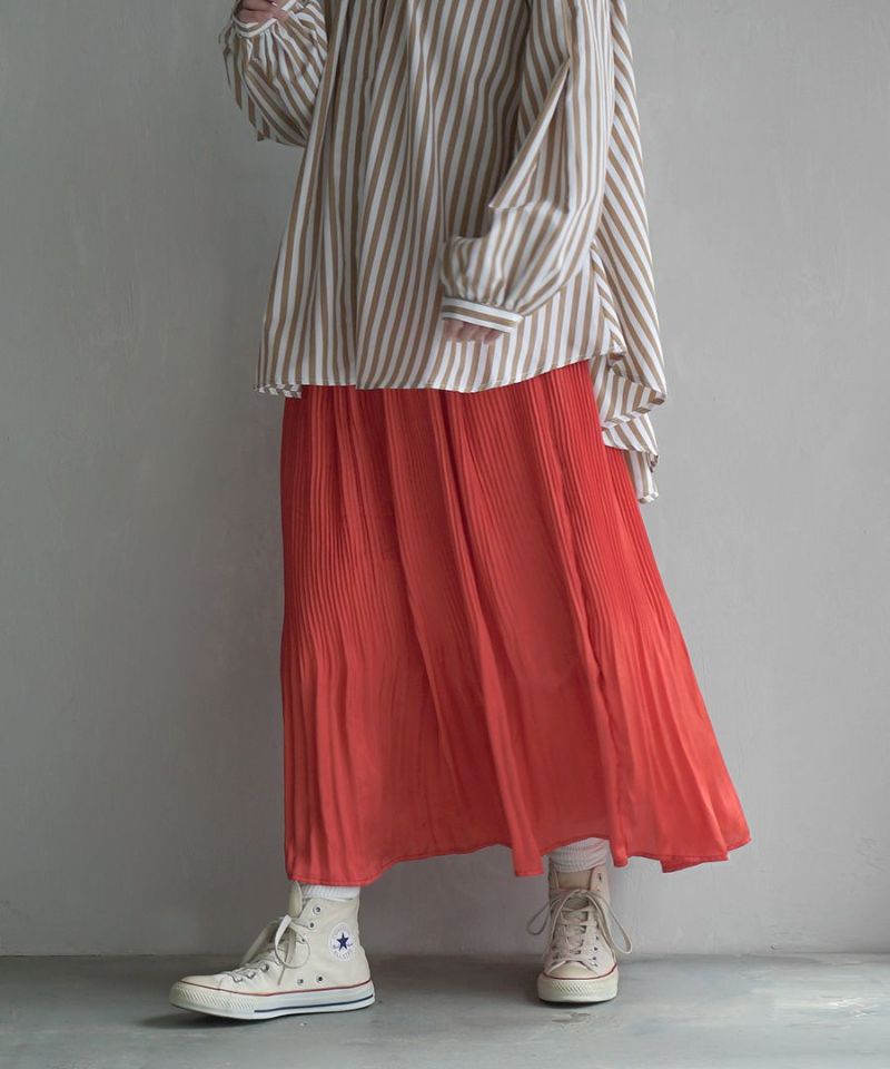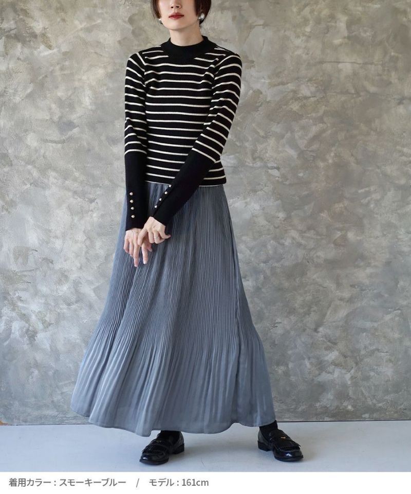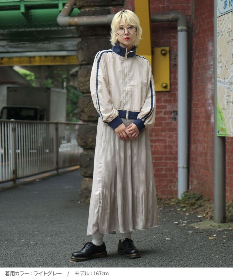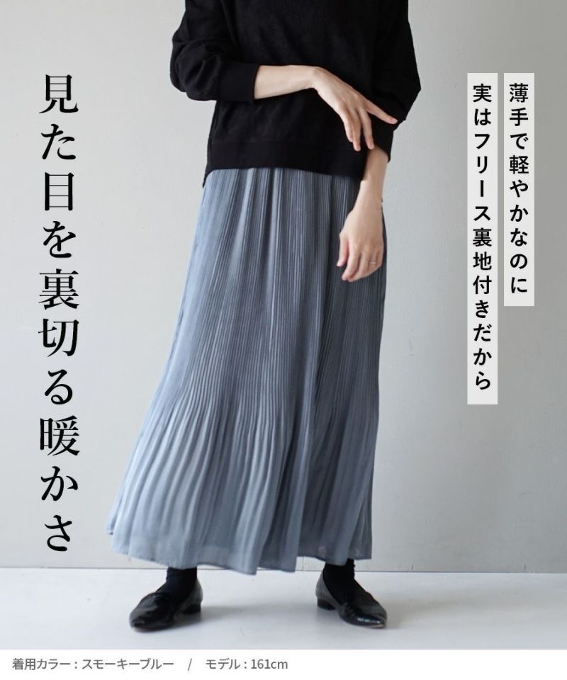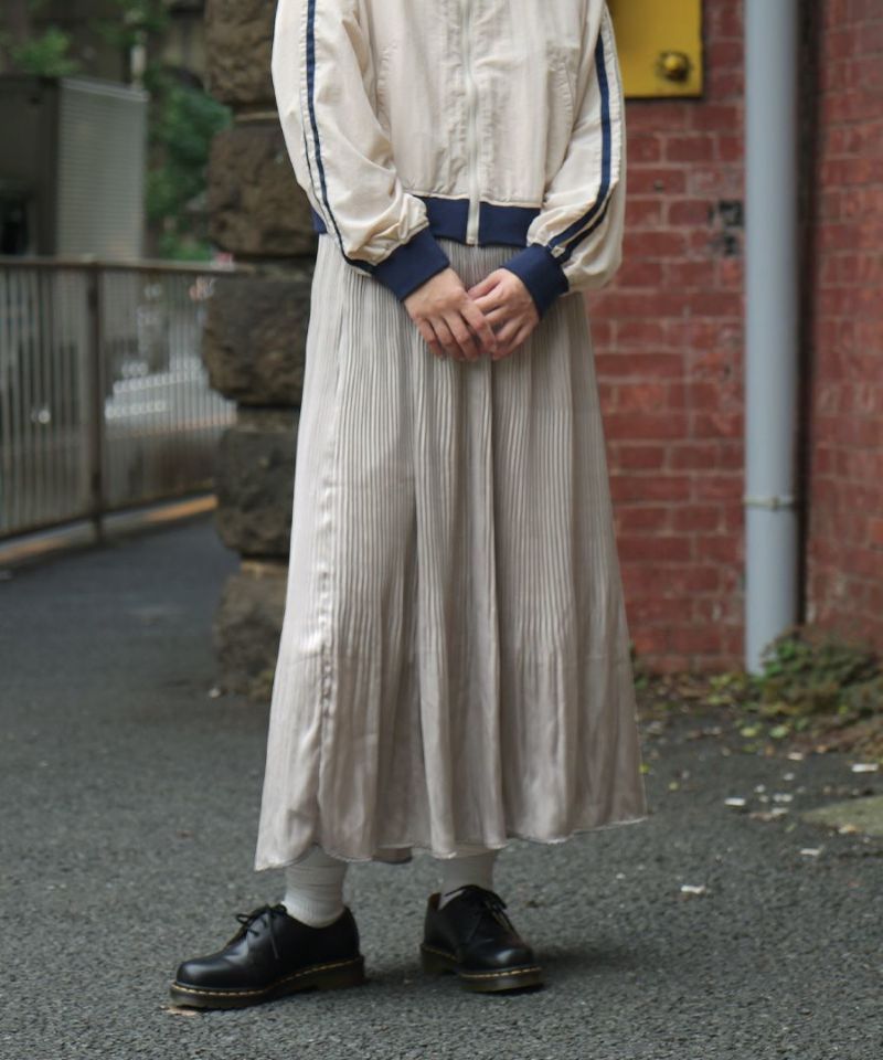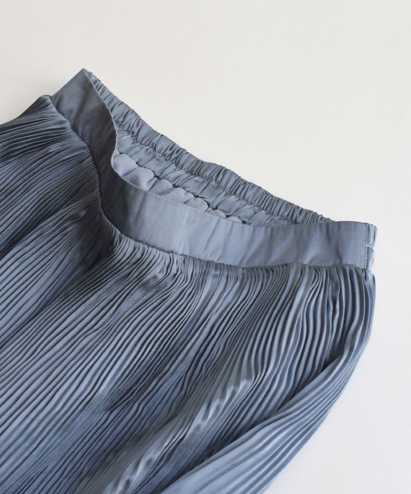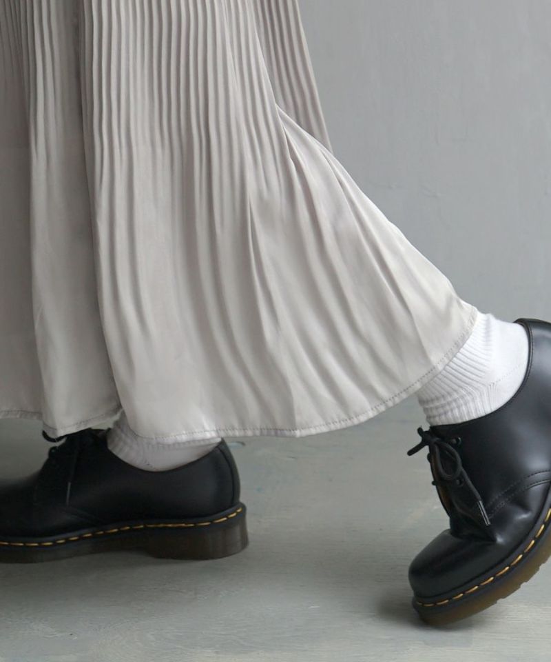 日本 zootie - 輕盈保暖百褶緞面長裙-淺灰