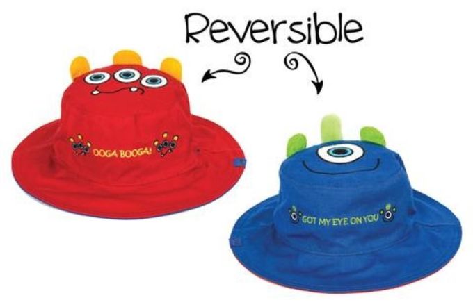 加拿大 flapjackkids - 夏日兒童防曬翻轉帽-紅藍怪獸