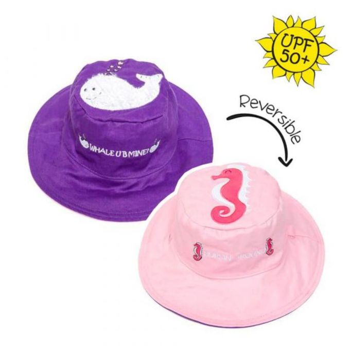 夏日兒童防曬翻轉帽-鯨魚/海馬 (S(頭圍約46-50cm))