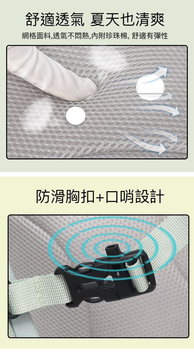 防滑可調節胸扣設計, 可根據身高調整胸扣高度