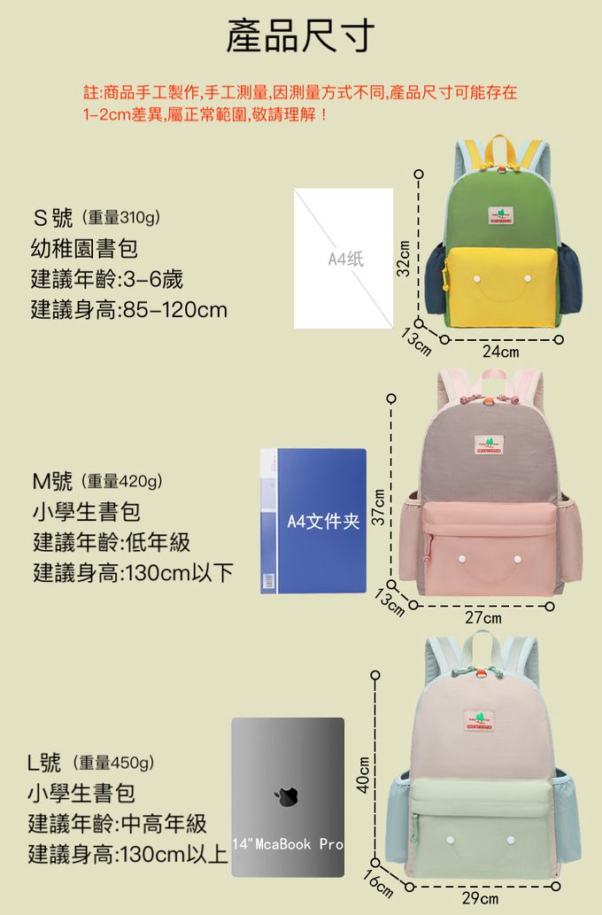 Babytree 幼稚園書包 國小書包 後背包 校外教學包 S/M/L三種尺寸