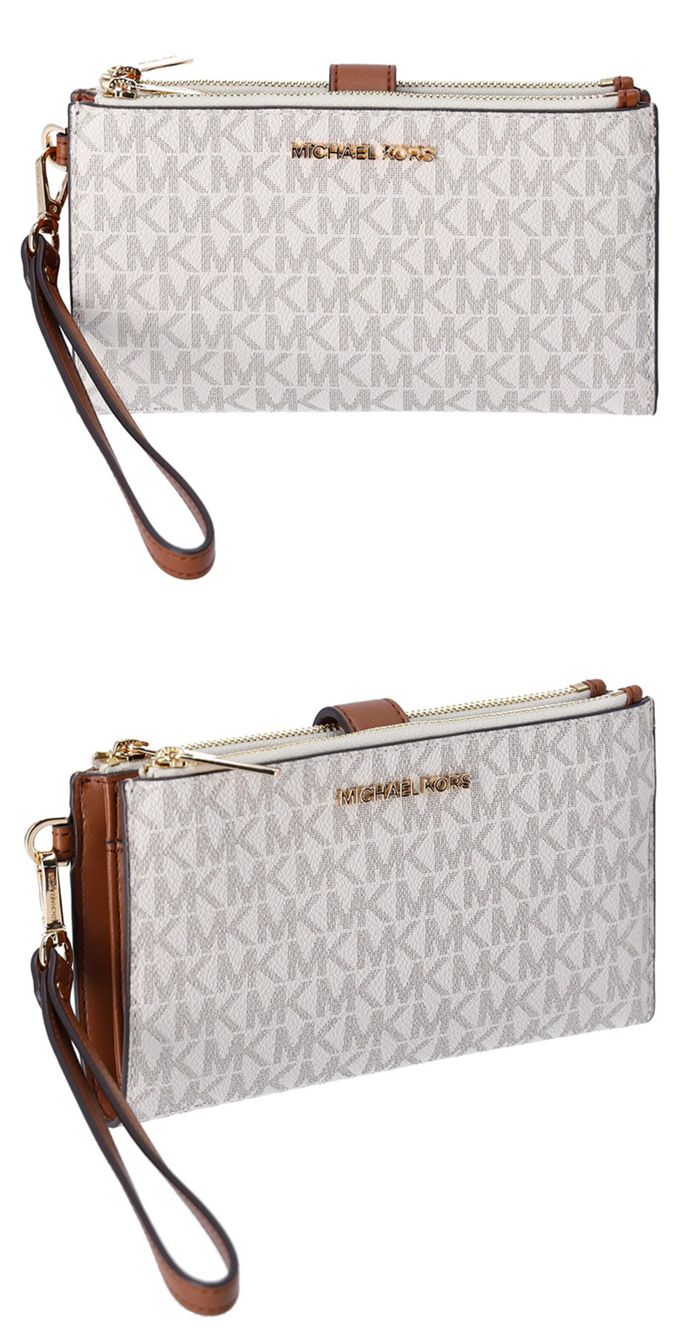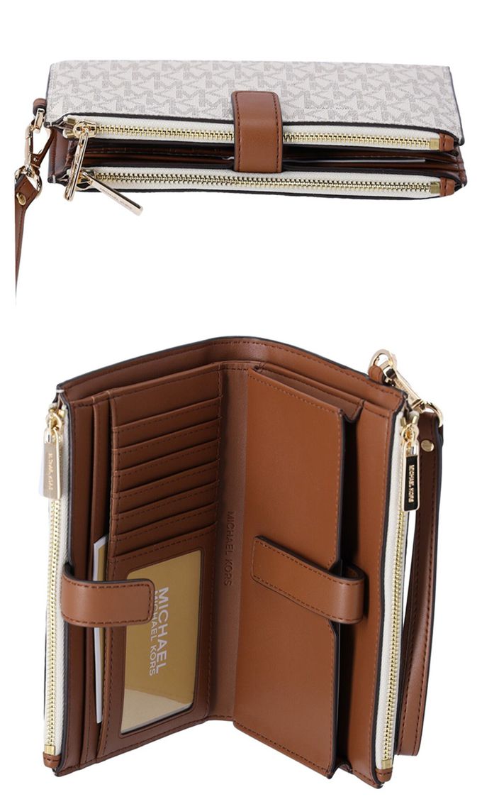 滿版LOGO防刮皮革雙層長夾 (香草白)