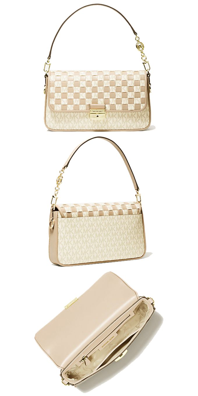 拼接皮革格子翻蓋兩用包 (白卡其)