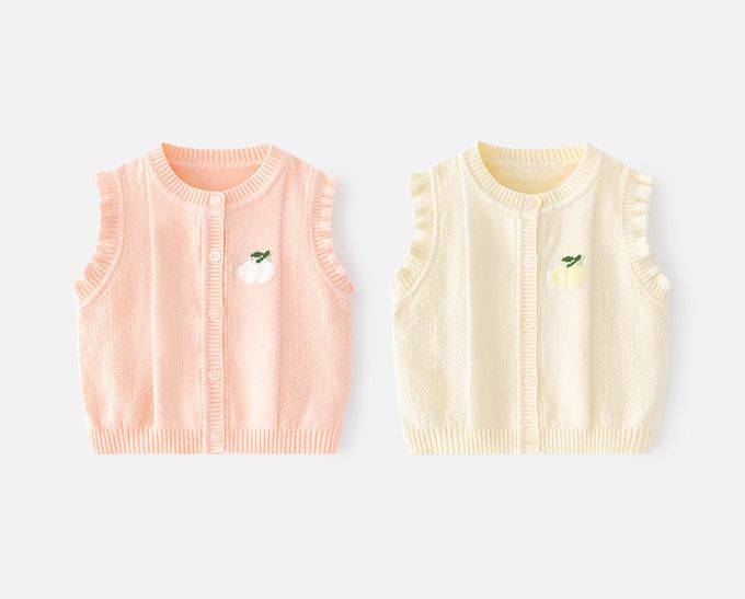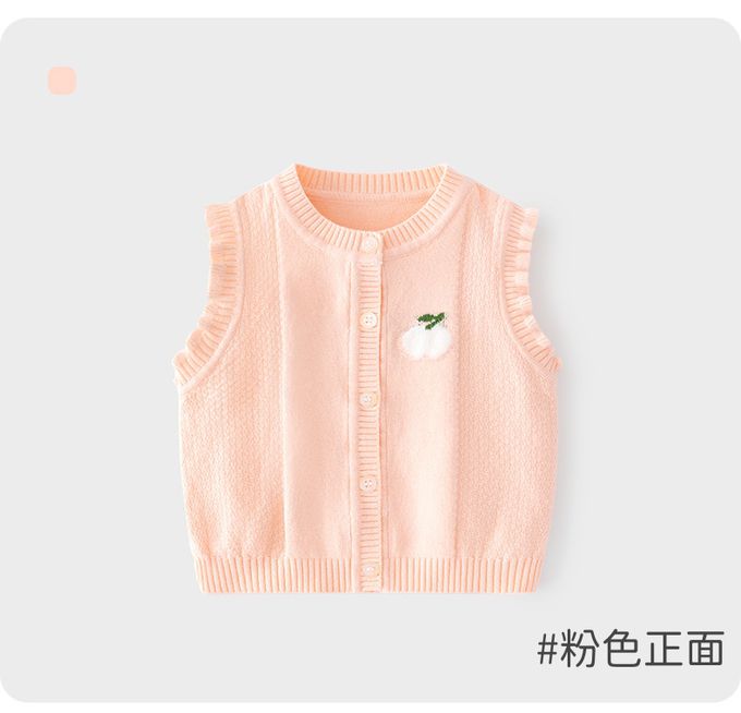 BABUYU - 舒適圓領百搭針織背心-草莓兔兔-粉色
