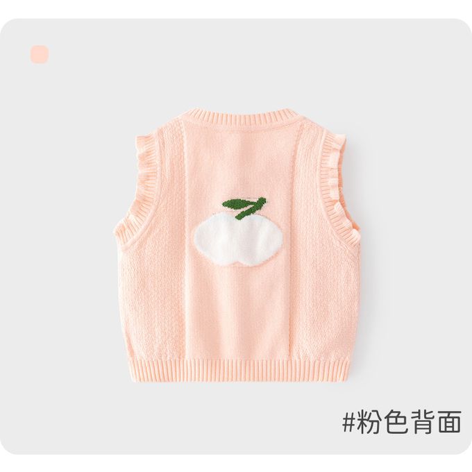 舒適圓領百搭針織背心-前後小蘋果-粉色