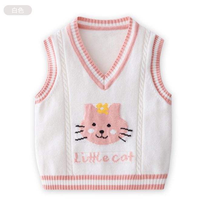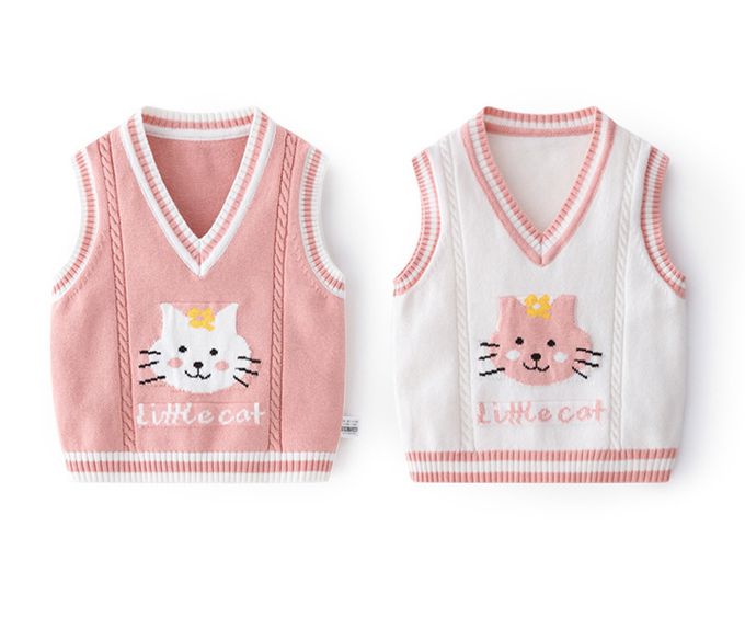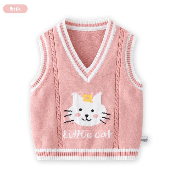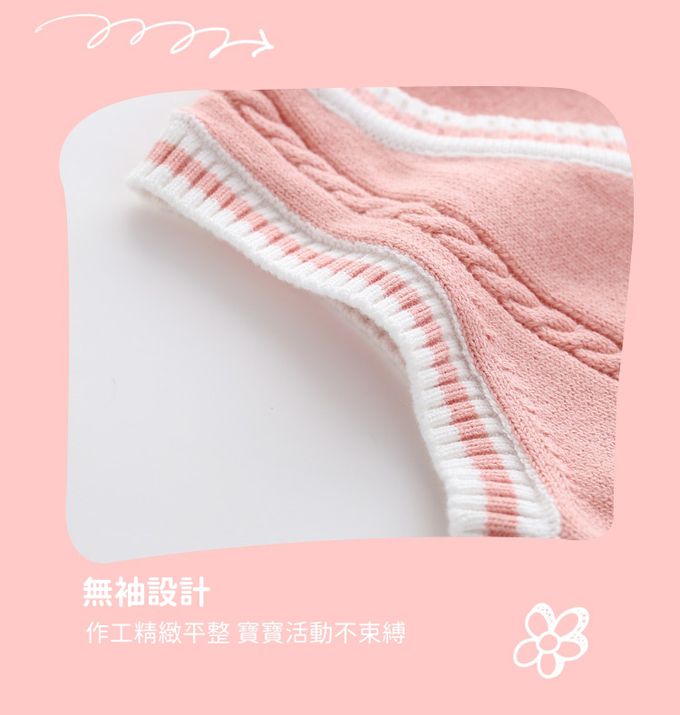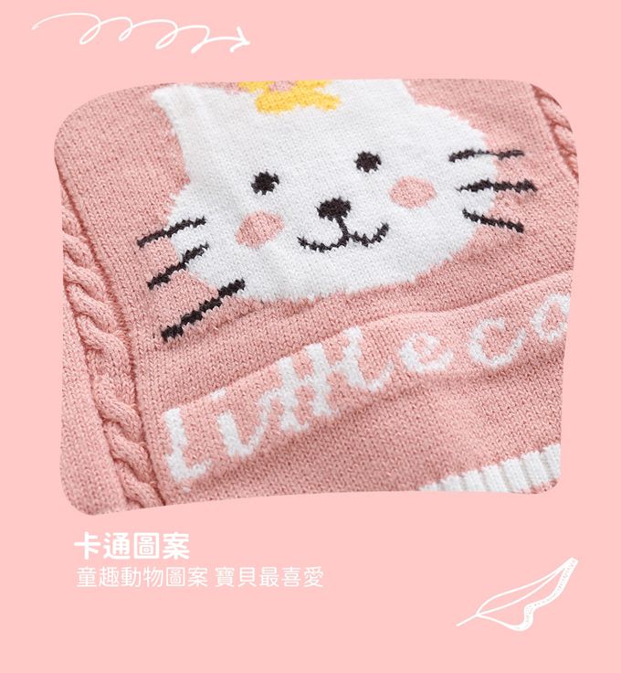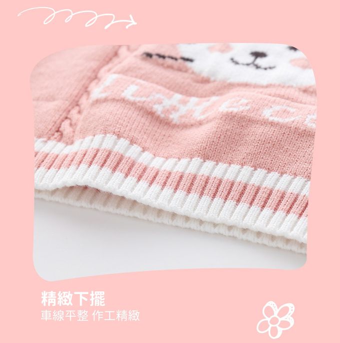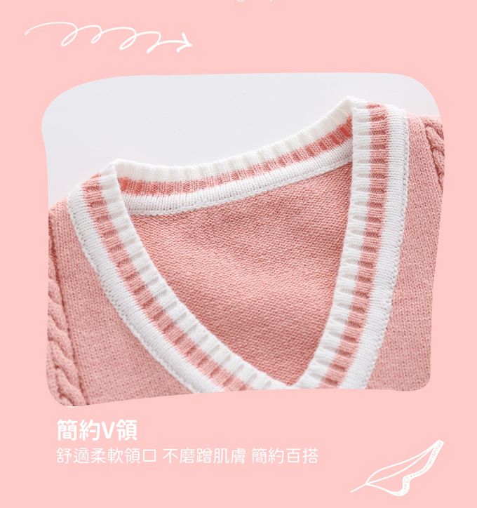 舒適V領百搭針織背心-麻花小貓咪-粉色