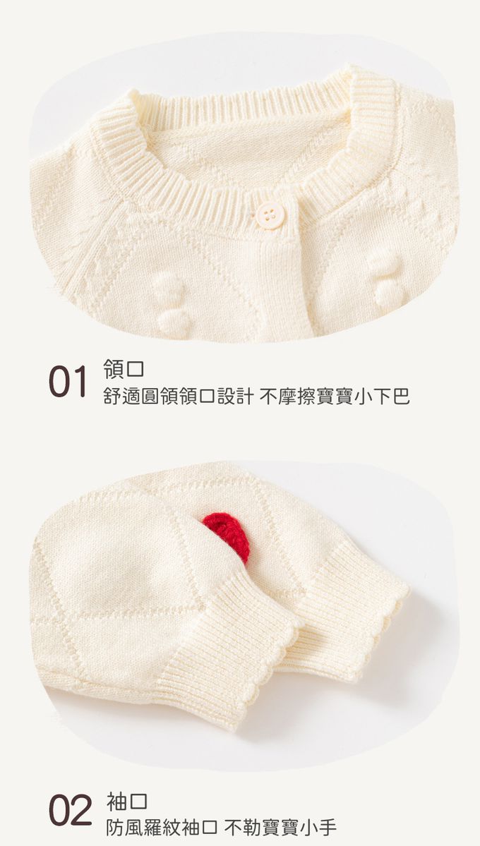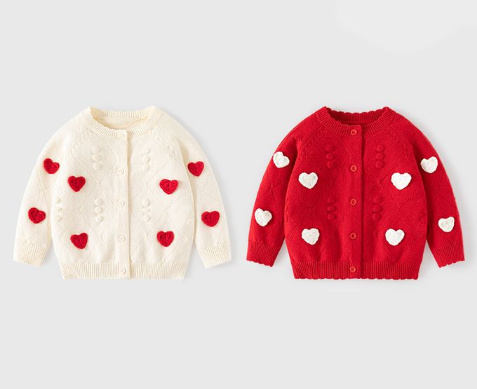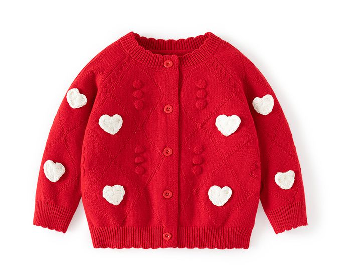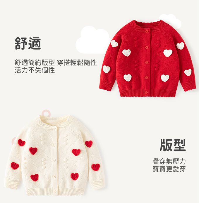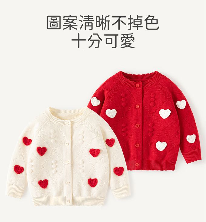 舒適圓領提花針織外套-立體小愛心-紅色