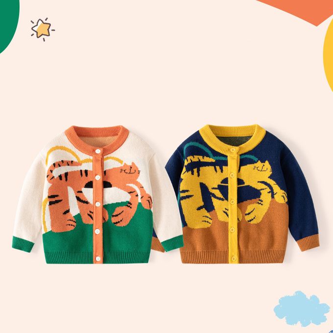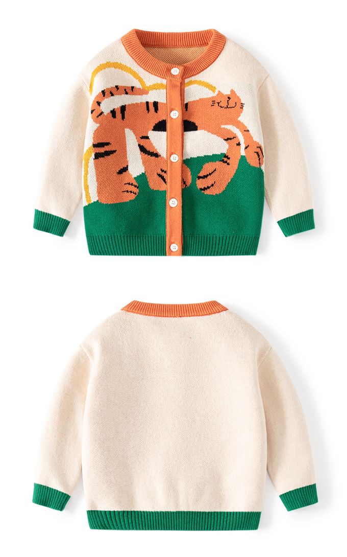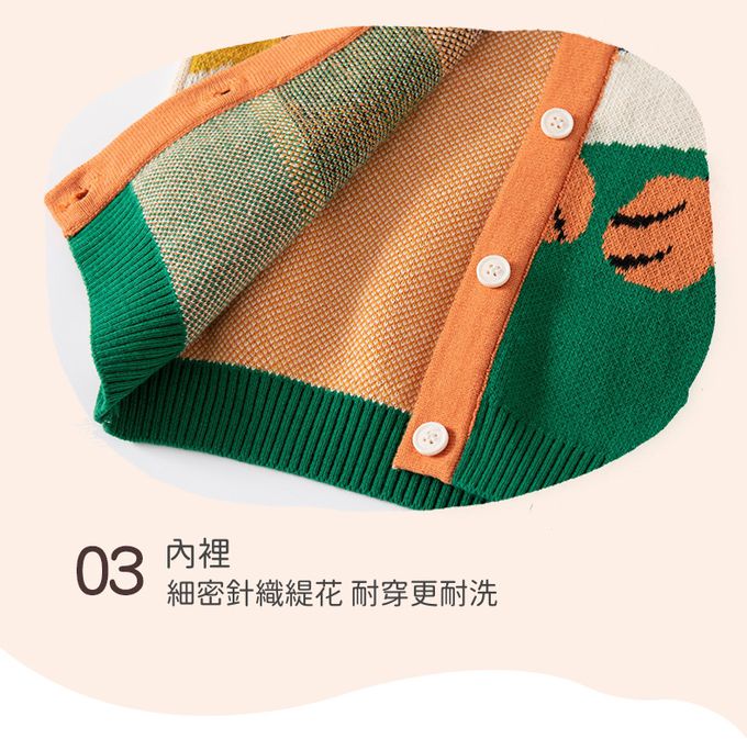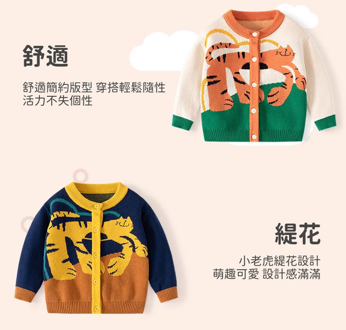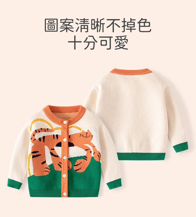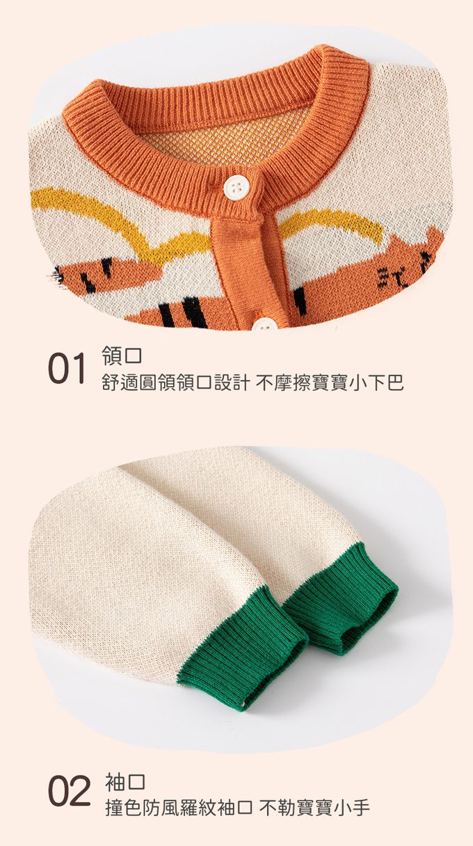 純棉圓領針織排釦外套-萌趣小老虎-米白色