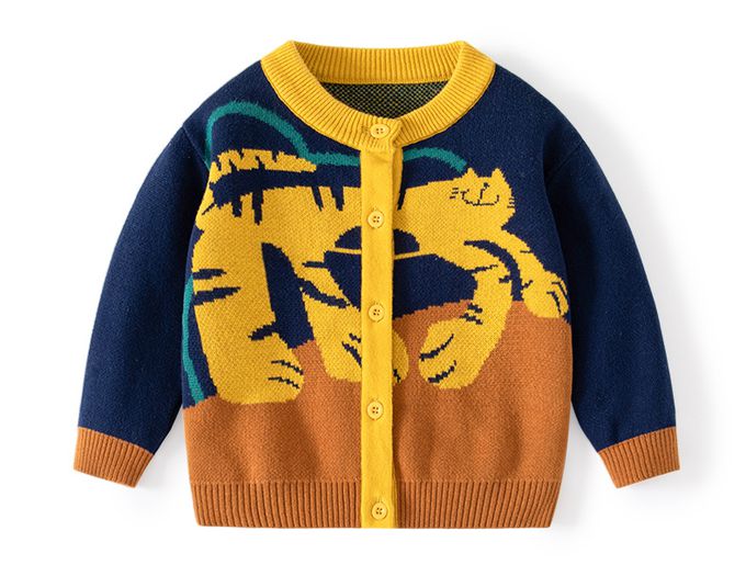 BABUYU - 純棉圓領針織排釦外套-Hi恐龍-藍色