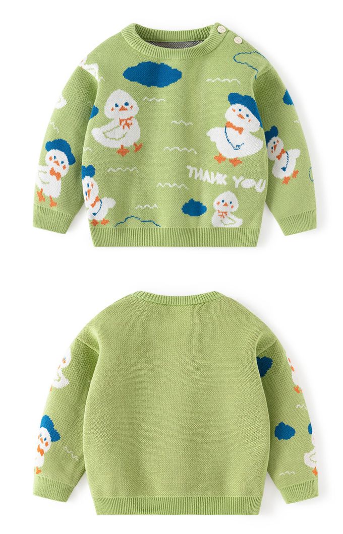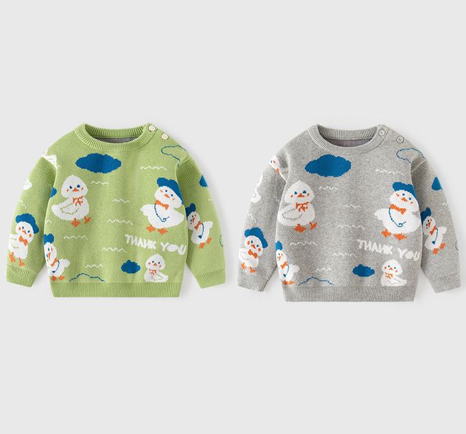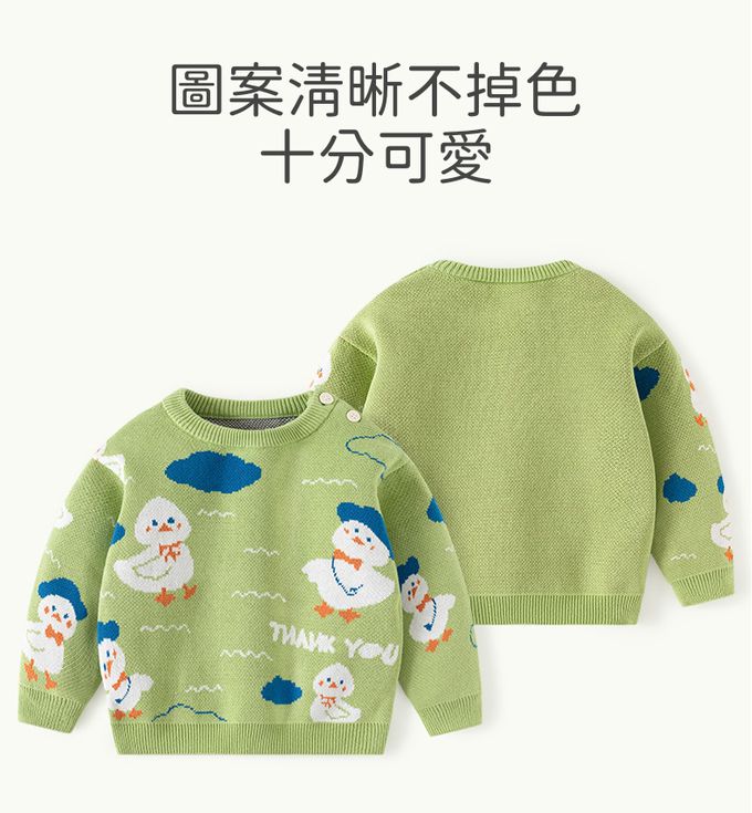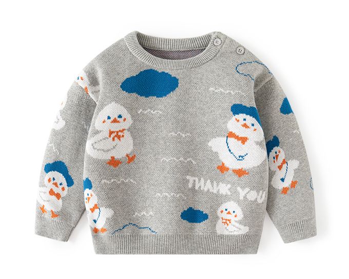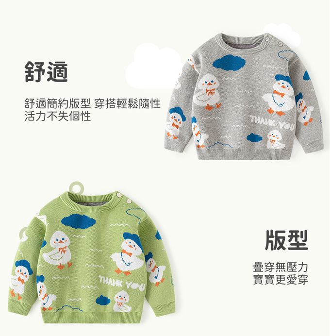 純棉圓領針織長袖上衣-快樂鴨鴨-灰色