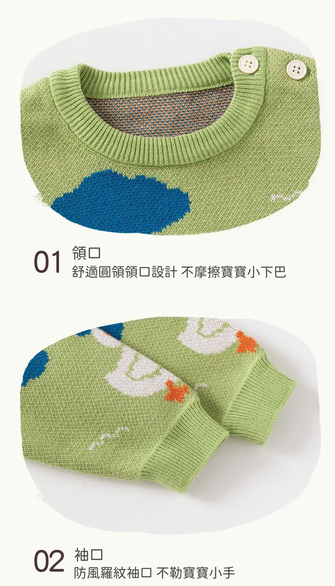 BABUYU - 純棉圓領針織長袖上衣-恐龍樂園-綠色