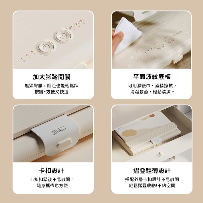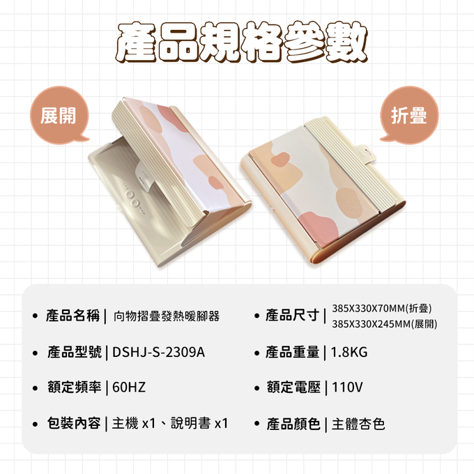 【安全注意事項】1. 為避免過熱,禁止覆蓋或重壓商品,請平穩放置乾燥處使用。2. 不使用時,請關閉電源並移除電源線插頭,避免發生危險。3. 禁止拉扯、纏繞本產品電源線,如電源線有磨損或接觸不良,請停止使用並聯繫客服人員。