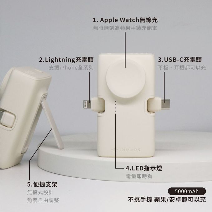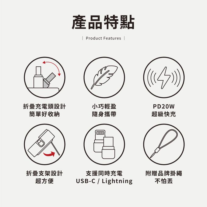 可折疊收納接口,USB-C、Lightning同時充電