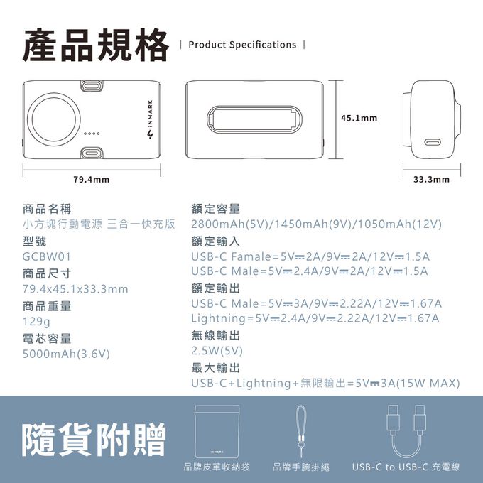 品名:小方塊行動電源 3合1快充版