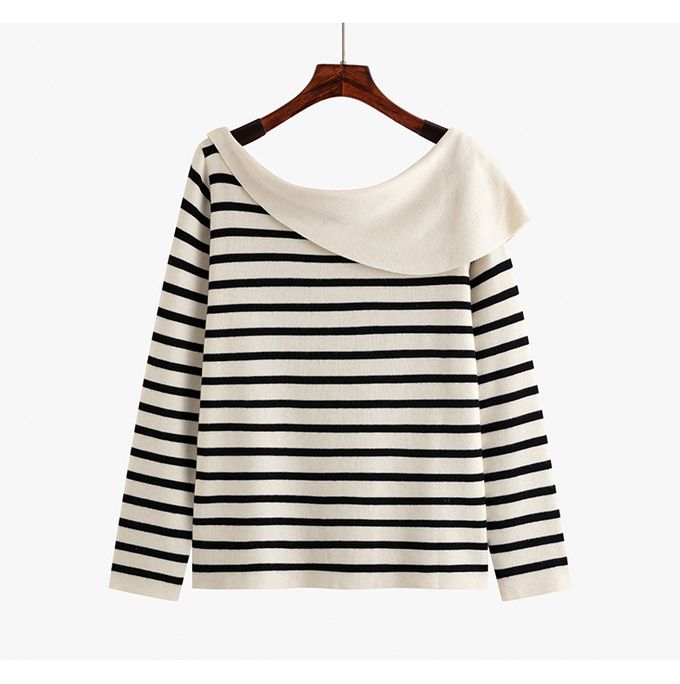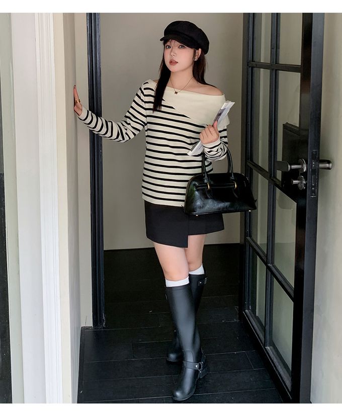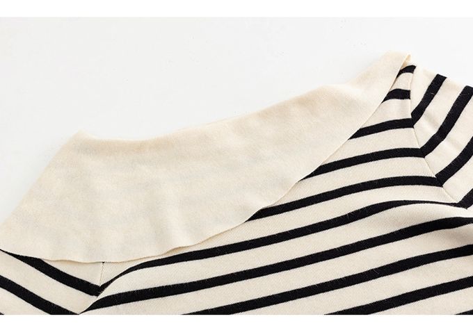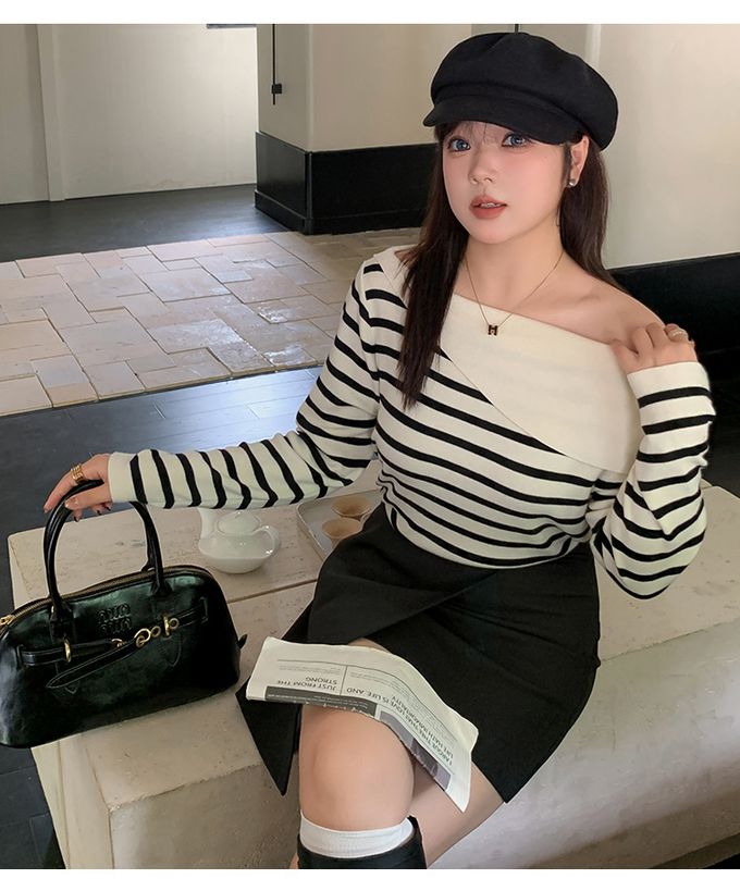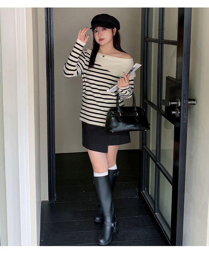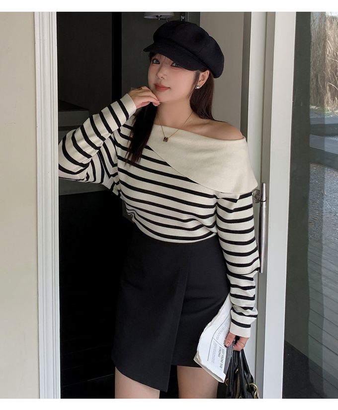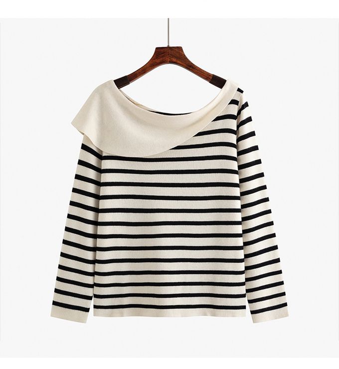品名:羊毛一字領露肩針織長袖上衣