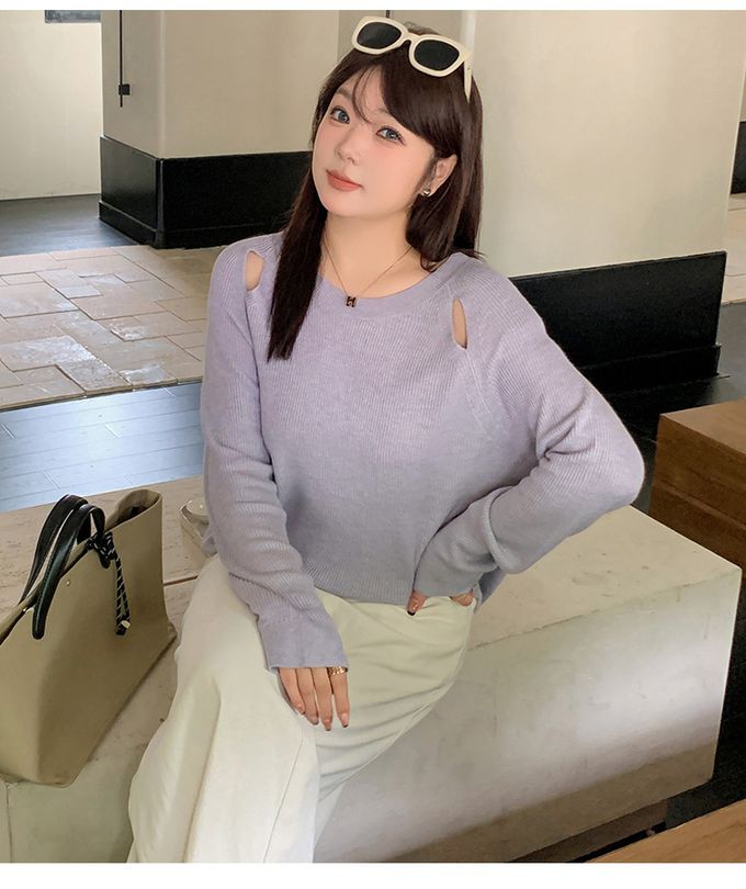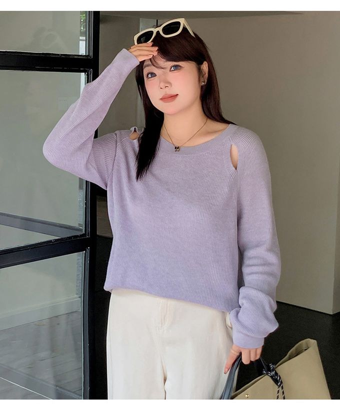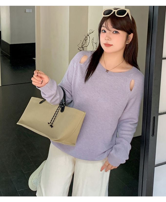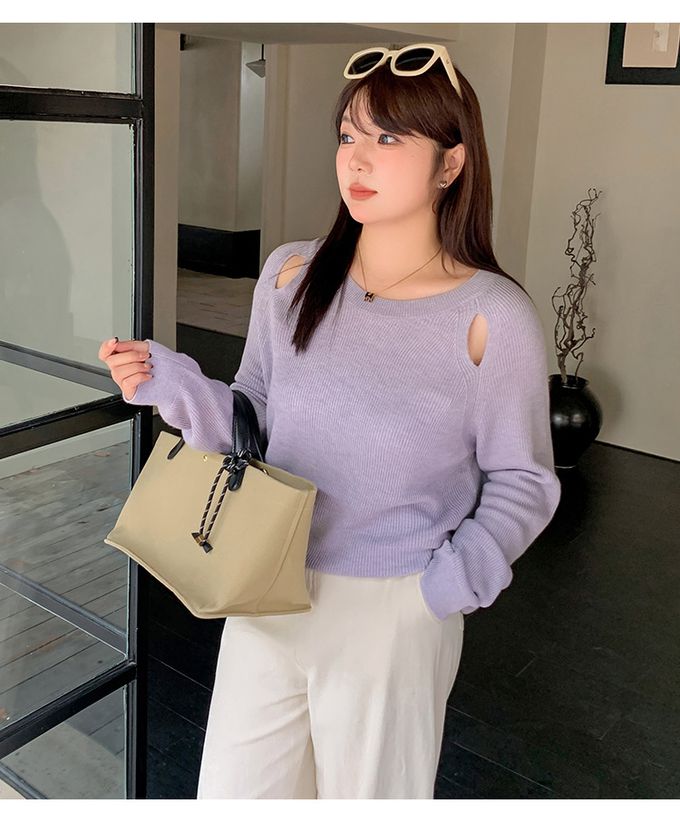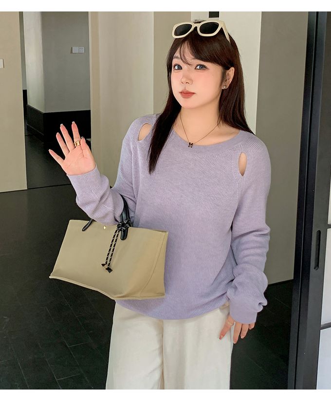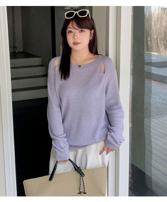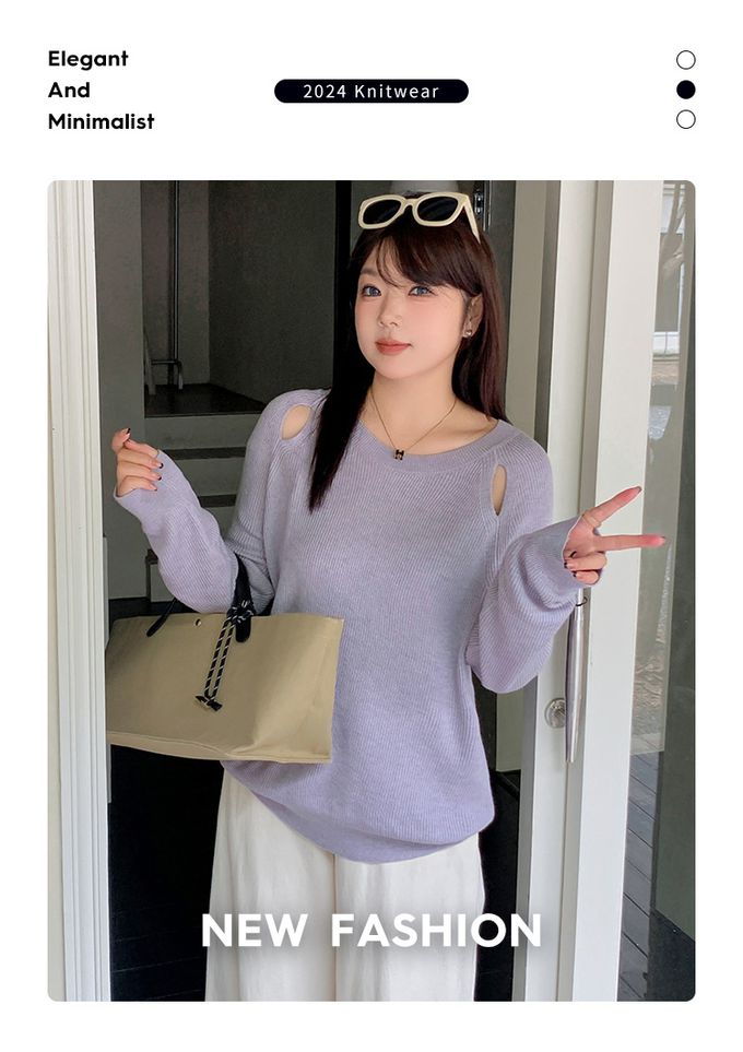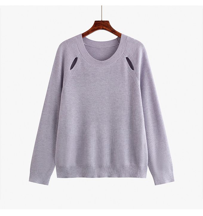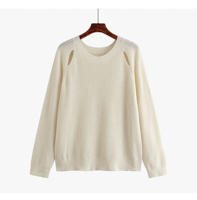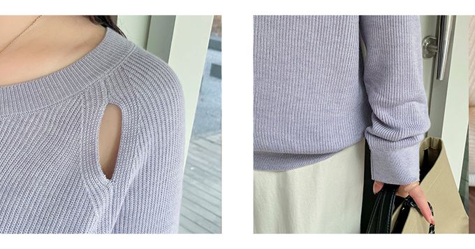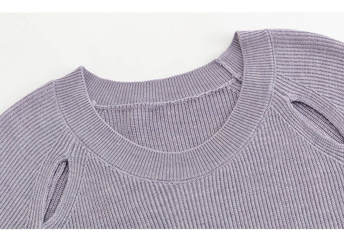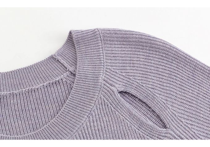 品名:羊毛蠶絲不規則鏤空針織長袖上衣