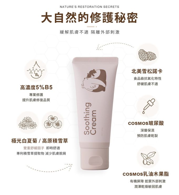 成分:雪松諾卡、積雪草、白夏菊、B5、玻尿酸、乳油木果脂
