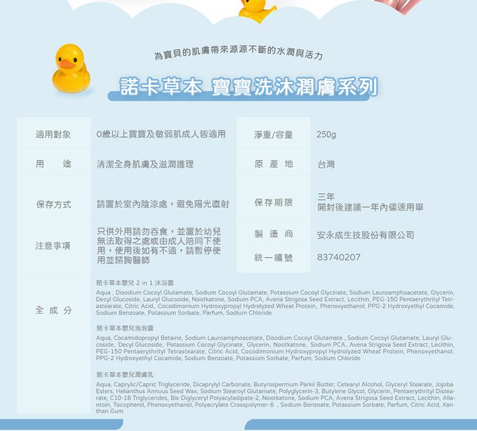 品名:諾卡草本嬰兒 2 in 1沐浴露 250g
