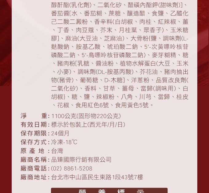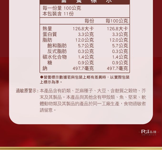 過敏原:紅燒:本產品含大豆、芝麻、奶製品、小麥及其製品 甘蔗:本產品含麩質之穀物、大豆、奶類及其製品