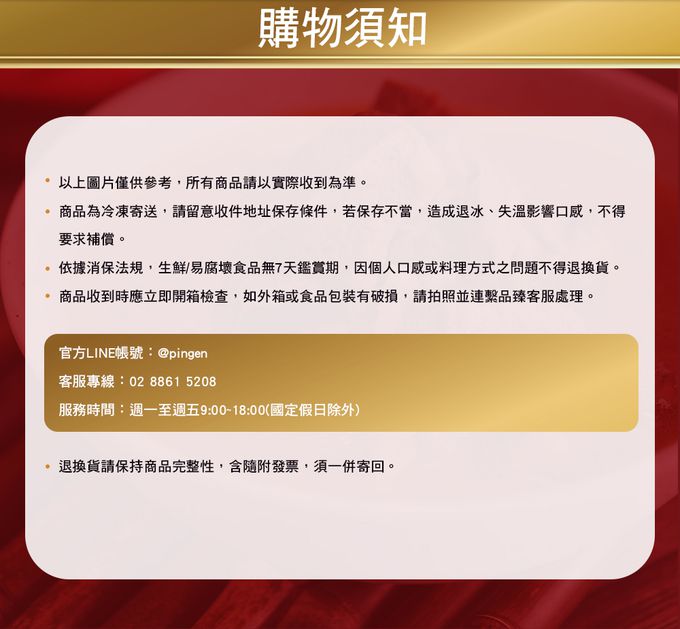 部分商品依據消費者保護法的規定,不適用七天鑑賞期/猶豫期範圍: