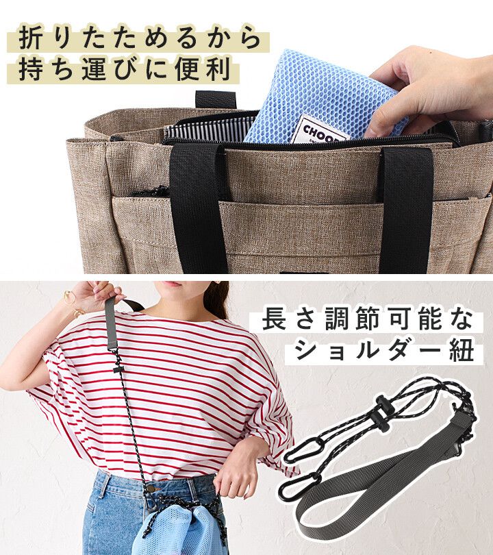 日本 LIZDAYS - 多格層帆布2way肩背/手提包-淺灰 (29x24x14cm)