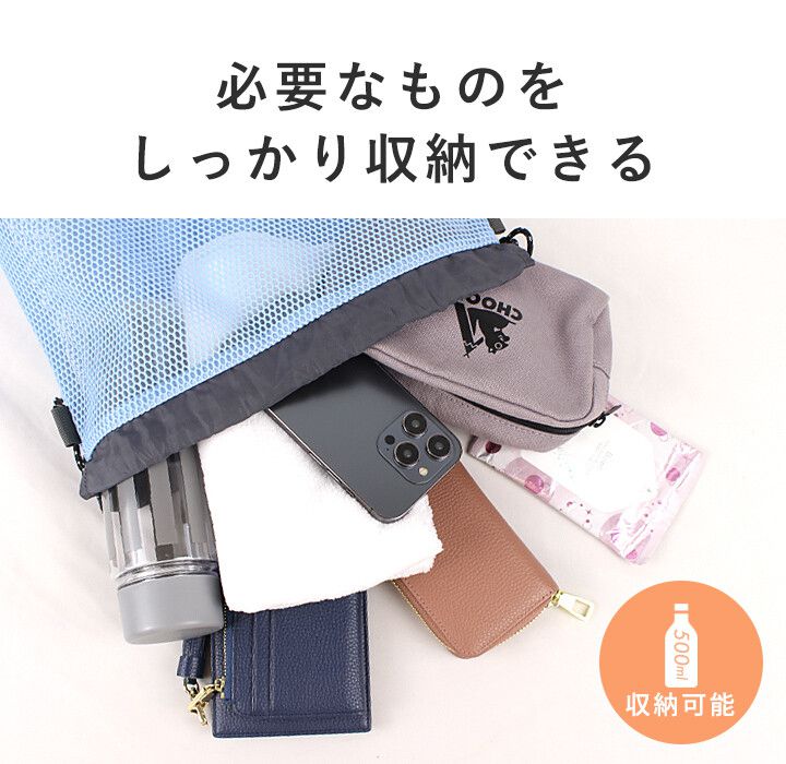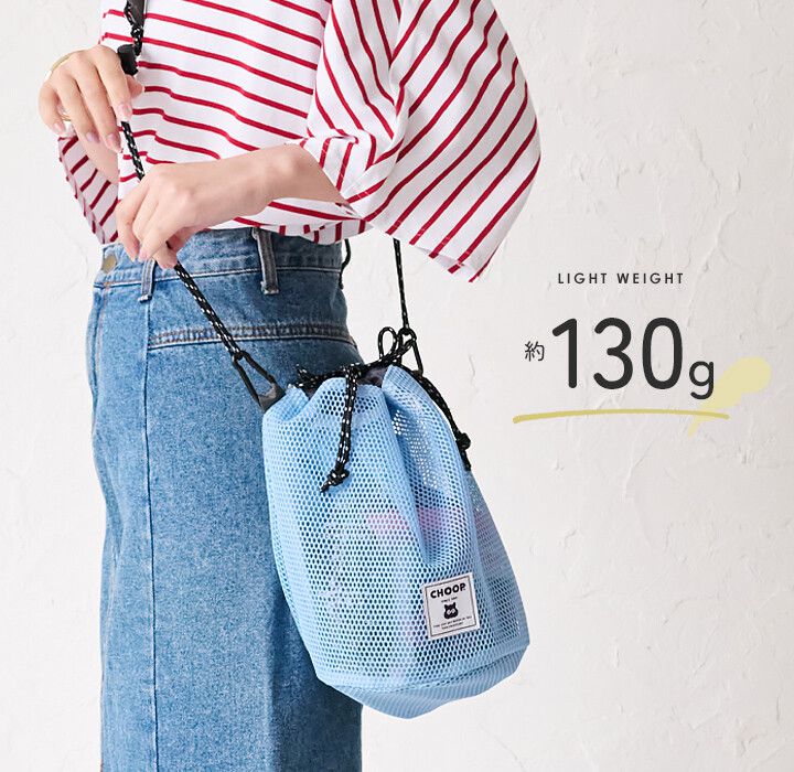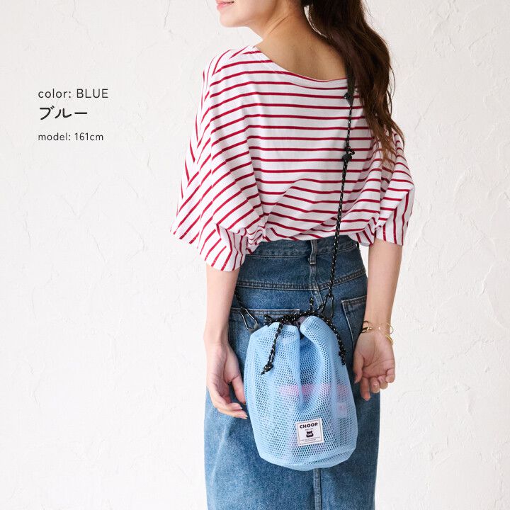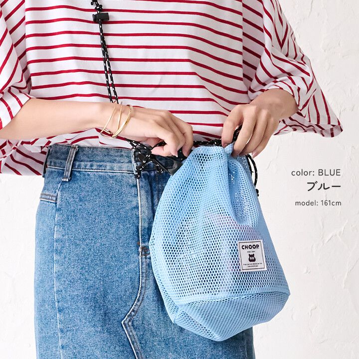 日本 LIZDAYS - CHOOP 輕巧網格束口側背包-藍 (20x27cm)