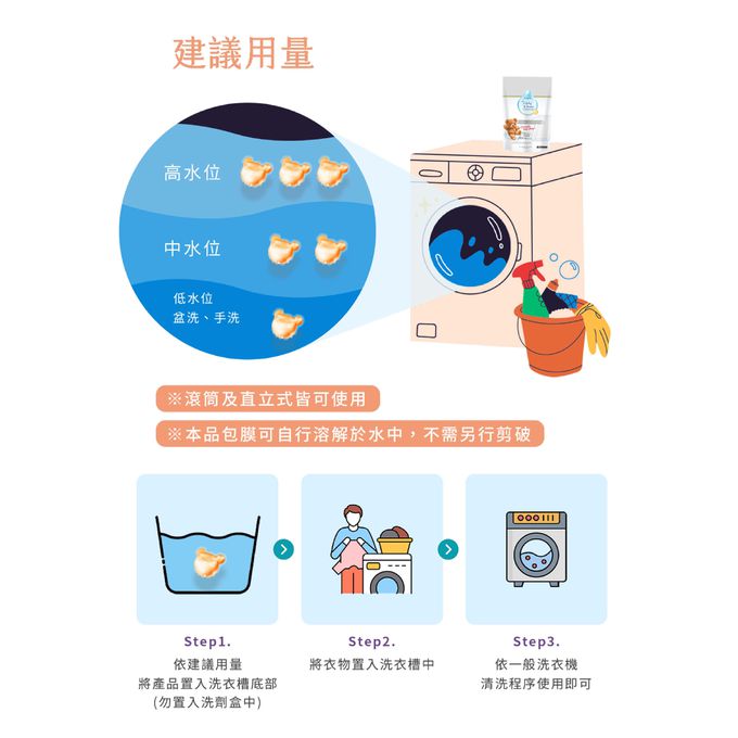 1顆搞定 低水位衣物,柔洗、手洗都OK