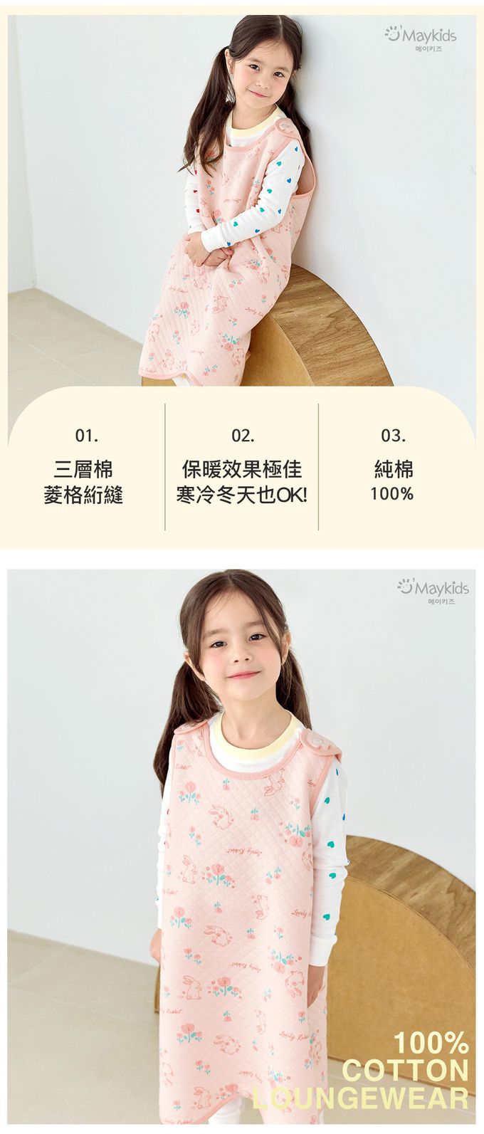 韓國 Maykids - 粉兔花園3層棉保暖防踢被
