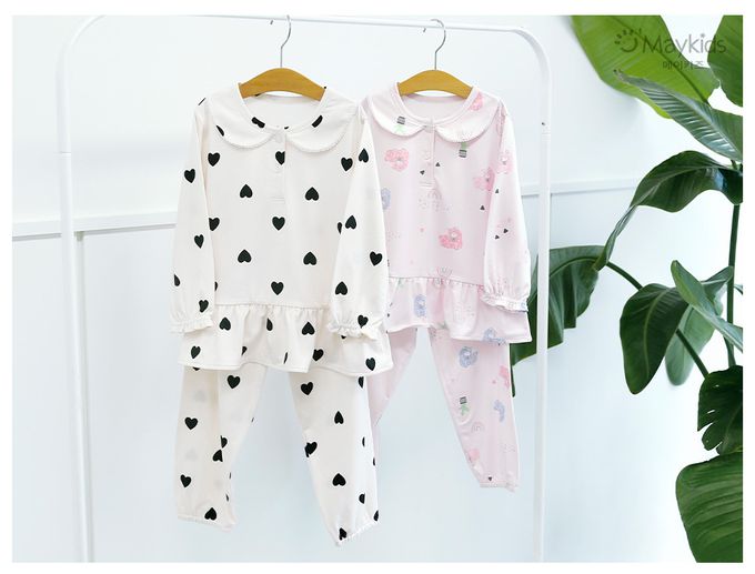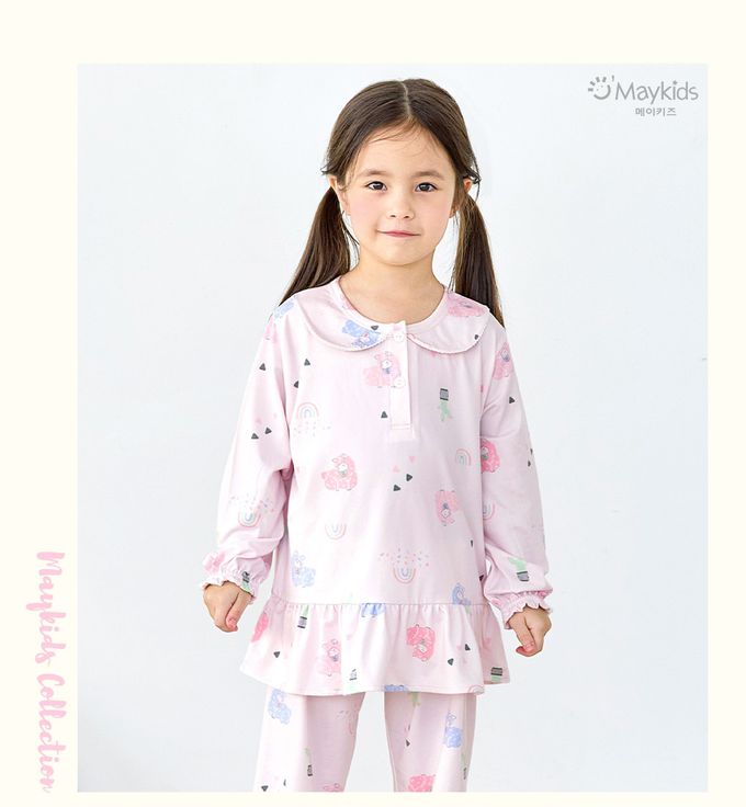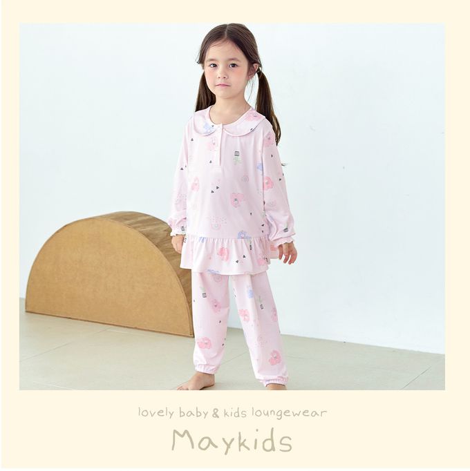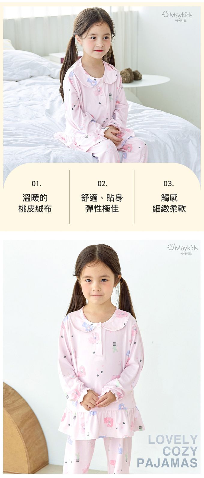 韓國 Maykids - 溫暖桃皮絨長袖睡衣套裝