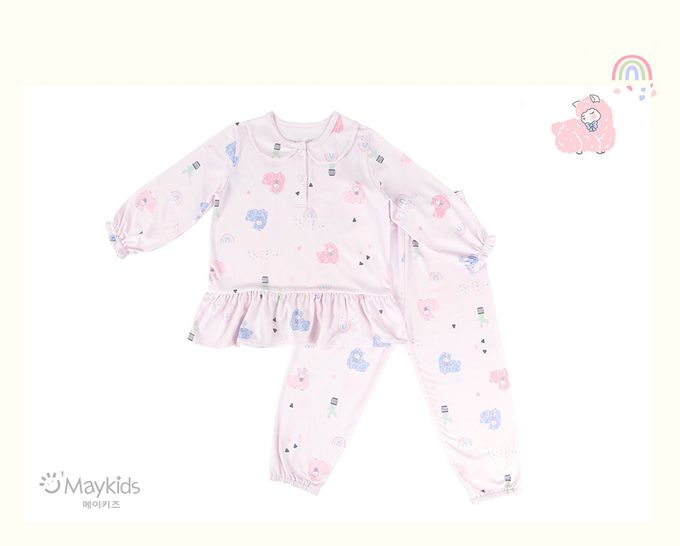 韓國 Maykids - 溫暖桃皮絨長袖睡衣套裝-夢幻羊駝-淡粉