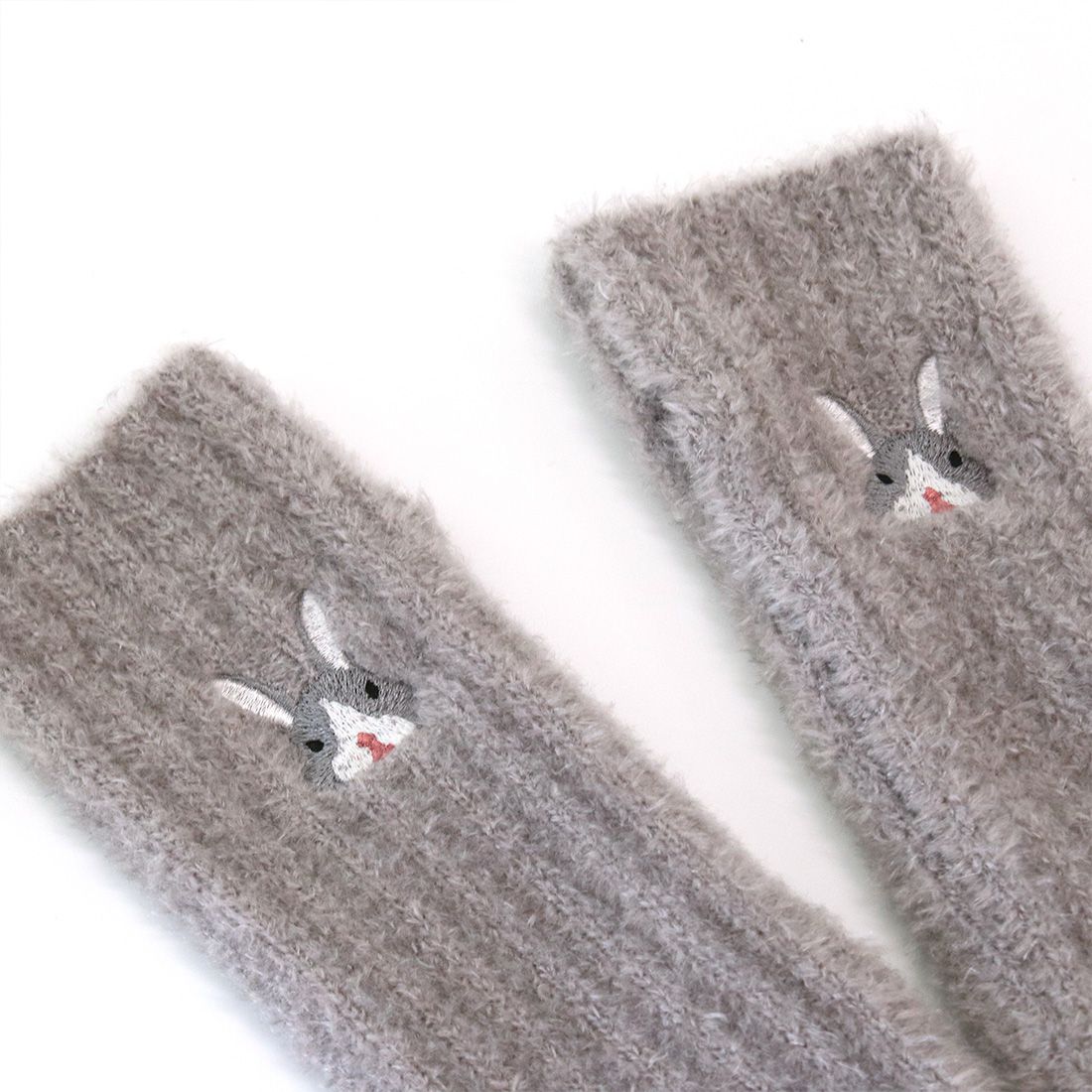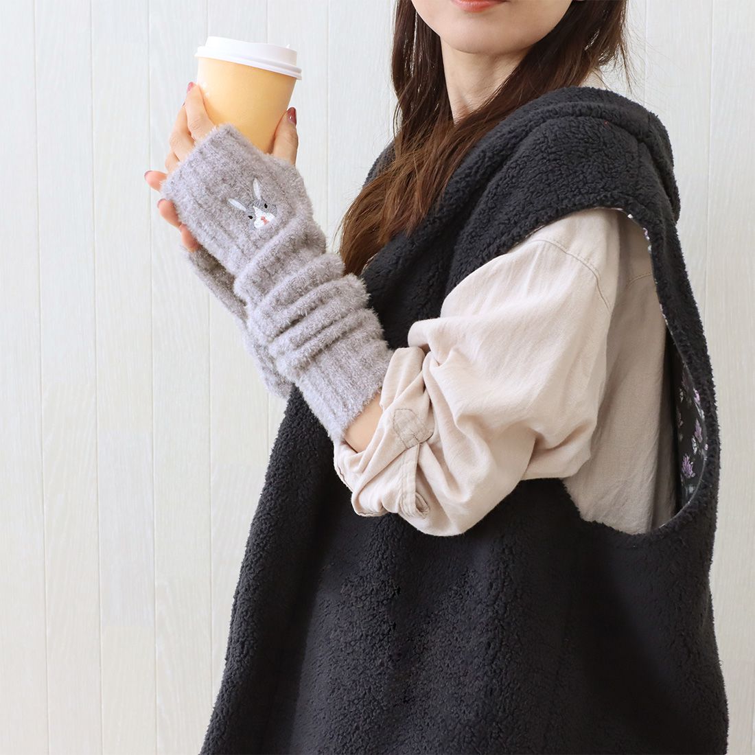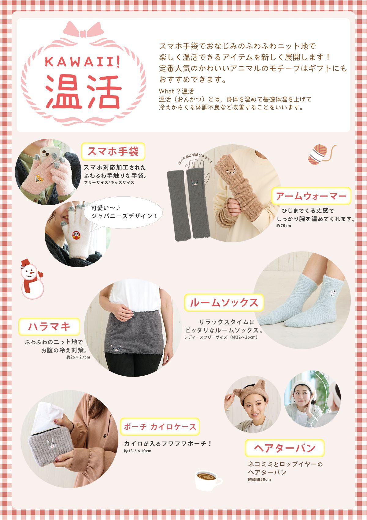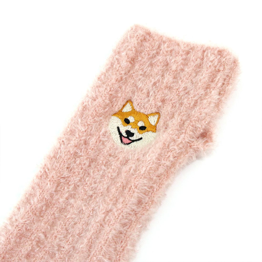 日本 TOMO - 溫活 短絨手臂保暖露指手套-柴犬-粉紅