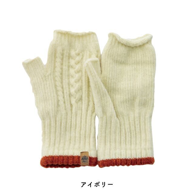 日本 BISQUE - 日本製 北歐風質感保暖手套(露指款)-素色-象牙