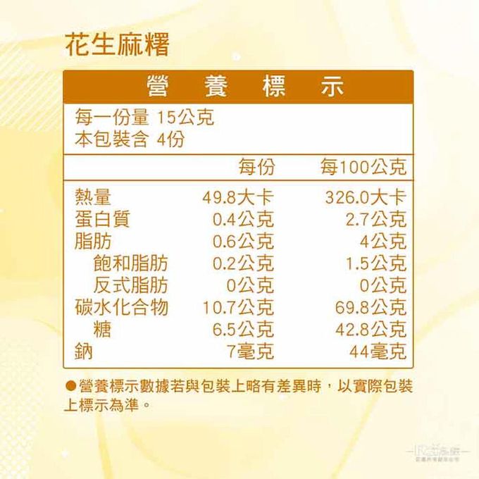 成分:【巧益】土生財 原味花生糖:花生、麥芽、砂糖、鹽 芝麻花生糖:花生、芝麻、麥芽、砂糖、鹽 【巧益】財大氣 紅豆麻糬:麥芽糖、紅豆、糯米粉、水、乙醯化己二酸二澱粉、樹薯澱粉、棕櫚油(抗氧化劑(維生素E))、乳化劑(脂肪酸甘油酯、檸檬酸)、馬鈴薯澱粉、鹽、砂糖、羥丙基澱粉、二氧化鈦、己二烯酸(防腐劑)、香料、多磷酸鈉、酸性焦磷酸鈉、焦磷酸鈉(無水) 花生麻糬:麥芽糖、花生醬、糯米粉、乙醯化己二酸二澱粉、白鳳豆、樹薯澱粉、綠豆、乳化劑(脂肪酸甘油酯、檸檬酸)、馬鈴薯澱粉、棕櫚油(抗氧化劑(維生素E))、鹽、砂糖、羥丙基澱粉、二氧化鈦、己二烯酸(防腐劑)、多磷酸鈉、酸性焦磷酸鈉、焦磷酸鈉(無水) 芝麻麻糬:麥芽糖、糯米粉、黑芝麻醬(黑芝麻、脂肪酸蔗糖酯(乳化劑))、乙醯化己二酸二澱粉、白鳳豆、樹薯澱粉、綠豆、乳化劑(脂肪酸甘油酯、檸檬酸)、芝麻、馬鈴薯澱粉、棕櫚油(抗氧化劑(維生素E))、鹽、砂糖、羥丙基澱粉、二氧化鈦、己二烯酸(防腐劑)、多磷酸鈉、酸性焦磷酸鈉、焦磷酸鈉(無水)