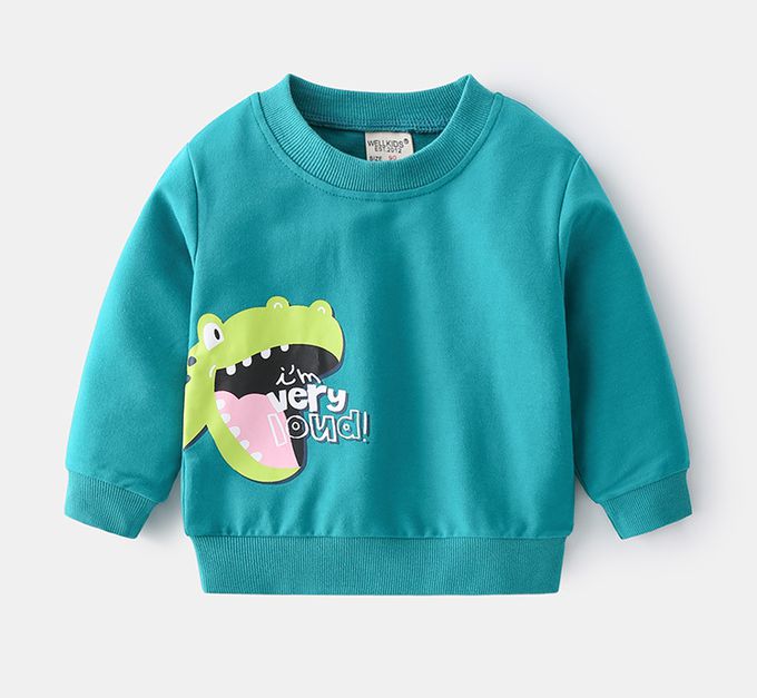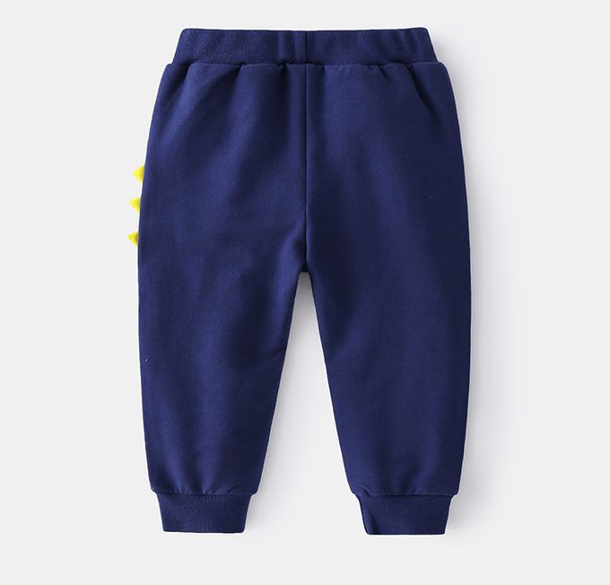 WELLKIDS - 圓領寬鬆運動服套裝-恐龍散步-藍+灰